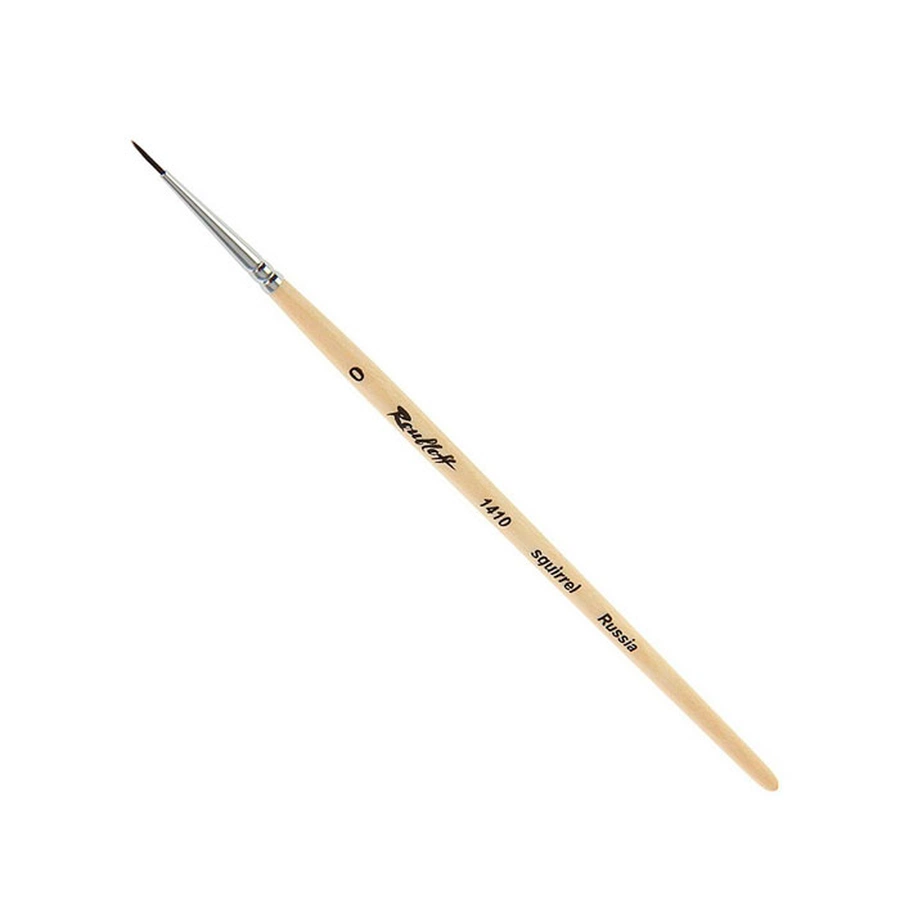 Круглая кисть из беличьего ворса используется во многих видах живописных работ. Короткая ручка удобна для тщательной проработки деталей, а конусообразные ворсинки скреплены хромированным медным патроном. Волос белки очень тонок, мягок и упруг, что делает эту кисть идеальной для работы в акварельной технике. Также она обладает великолепной способностью покрывать участки краской однородного тона, ведь у ворса отличная впитываемость и, одновременно с этим, отдача влаги. Универсальность формы позволяет применять кисть для изображения плавных переходов игривой воды, набросков людей и зданий с помощью пятна с последующей деталировкой