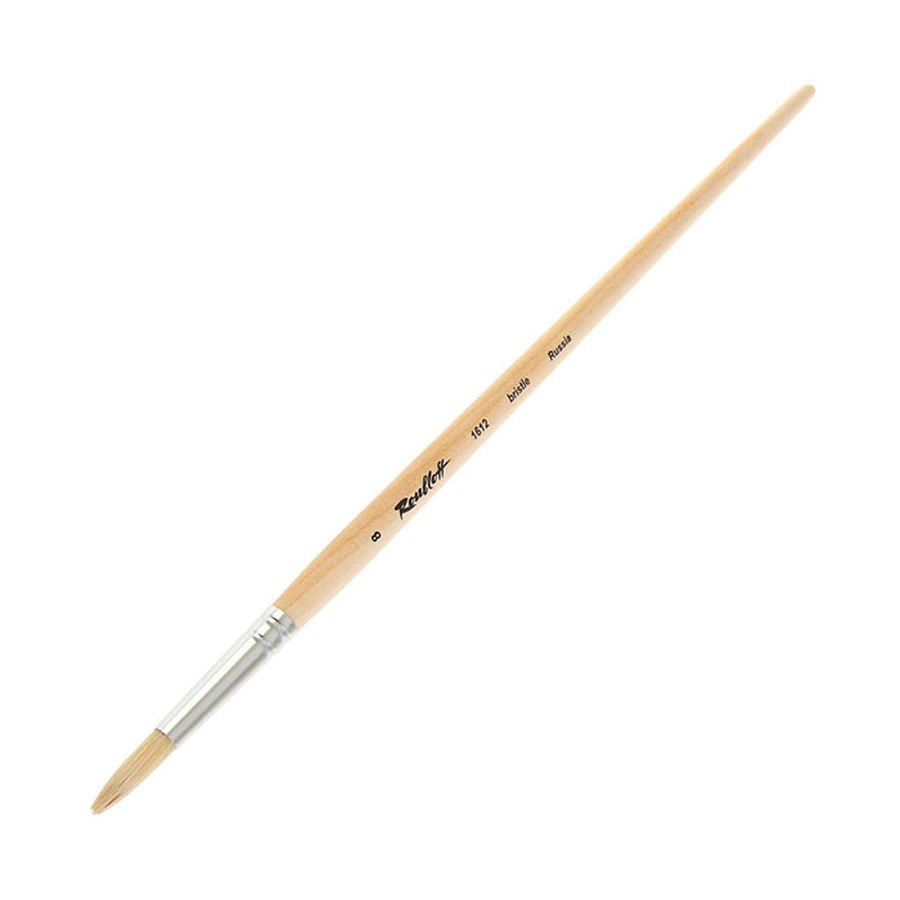 Круглая кисть из волоса щетины с длинной ручкой, пропитанной лаком, является наиболее оптимальным инструментом для живописной работы с густыми красками в пастозной технике. Алюминиевая обойма надежно собирает очень жесткие, но упругие волоски в единый пучок. Расщепленный кончик - особенность волоса щетины - позволяет удерживать большой объем краски и наносить ровный слой на поверхность полотна. Крепкий, износоустойчивый волос хорошо наполняется пигментом и отлично отдает краску на поверхность холста. Такая форма кисти идеальна для написания округлых объектов натюрморта, лепестков цветов, пышных многоуровневых облаков и для проработки фактуры окружающей среды
