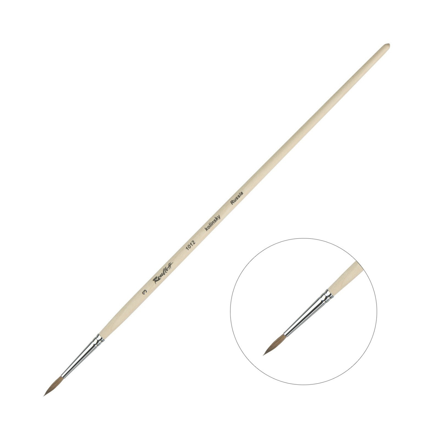 Круглая кисть из натурального колонкового ворса является высококлассным инструментом для множества типов живописных работ. Форма пучка в виде конуса с идеальным зауженным кончиком позволяет писать крупными плотными мазками, а также вести тонкую изящную линию. Сбалансированность длины ручки дает возможность свободно писать на мольберте, удерживая руку на расстоянии. Эластичность и упругость ворса способствуют полному контролю над текучестью краски, что ценится профессиональными мастерами, работающих как в акварельной, так и в масляной технике. Пишущая часть и пропитанная лаком деревянная ручка прочно скреплены хромированной медной обоймой.