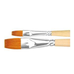 Плоская кисть из волоса колонка применима во многих живописных техниках. Пропитанная лаком длинная ручка надежно скреплена с ворсом алюминиевой обоймой.