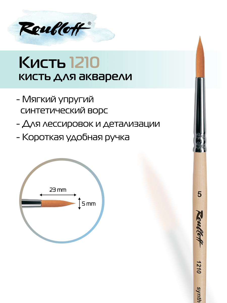 Круглые кисти Roubloff 1210 с мягким синтетическим ворсом рыжего цвета подойдут для работы с жидкими красками: акварель, гуашь, тушь или с художественным лаком. Тонкие и упругие ворсинки плотно прилегают друг к другу и хорошо удерживают влагу. Круглая кисть синтетика Roubloff подходит для заливки цвета, наложения ровных мазков разной величины, моделирования объёма, создания фактуры, детальной проработки и размывки пигмента. Лёгкая короткая ручка из берёзы пропитана лаком. Кисть удобно лежит в руке, пучок упругий и держит форму даже после интенсивного использования. Цельная нержавеющая обойма надежно скрепляет пучок с ручкой.