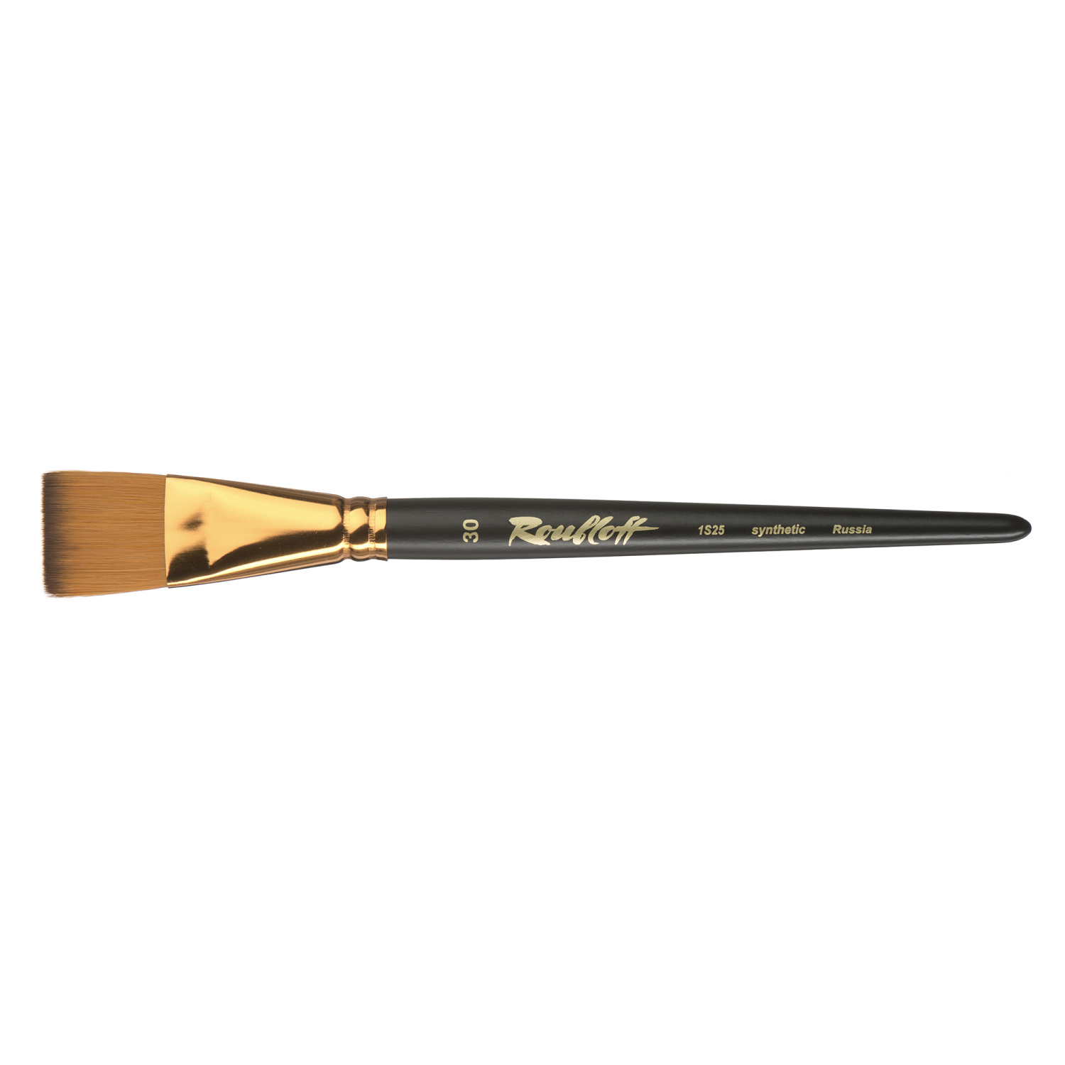 Плоская кисть с укороченной выставкой из синтетики под колонок применяется во всех видах живописи. Анодированная алюминиевая обойма надежно защищает ворсинки изделия и прочно скрепляет с короткой черной матовой ручкой.