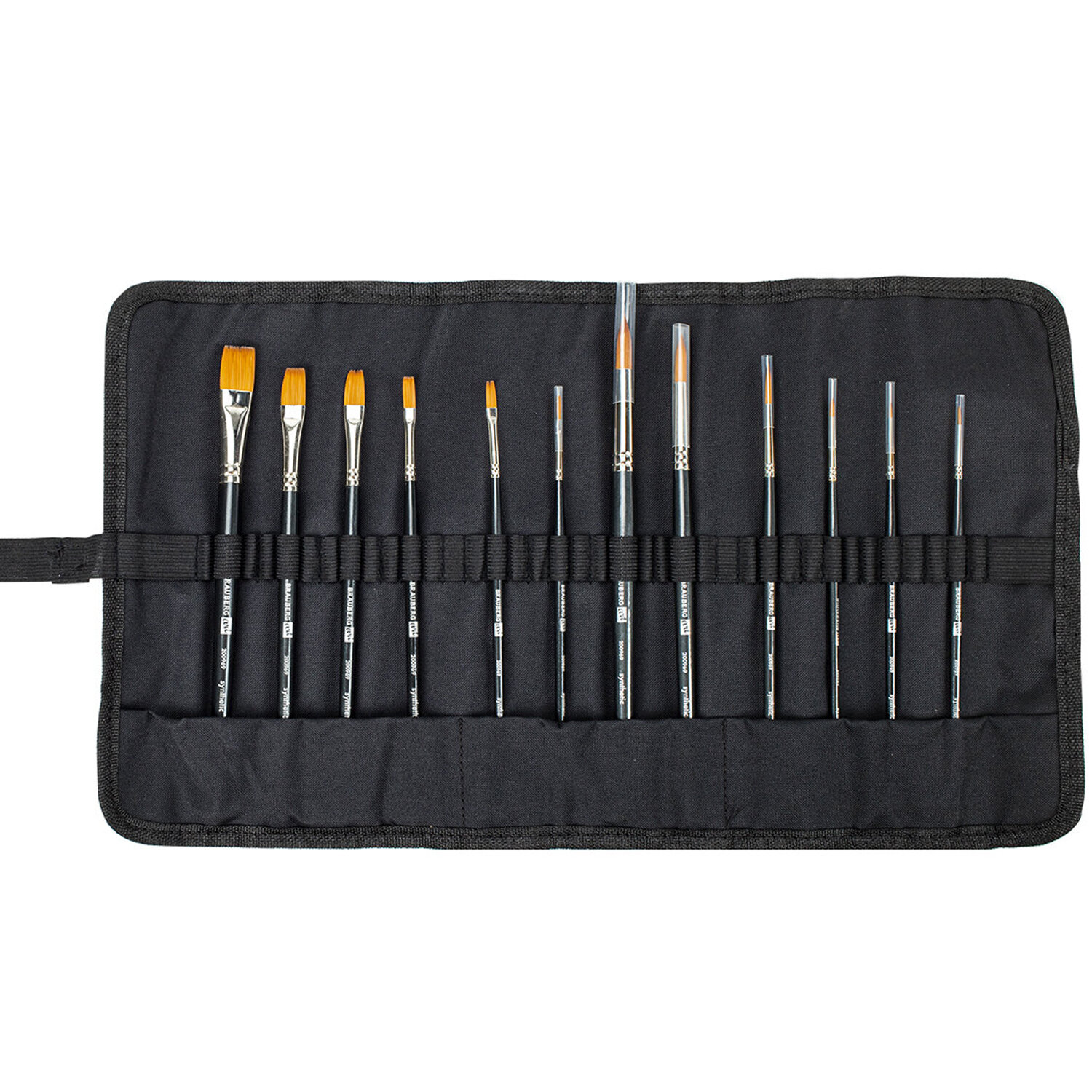 Кисти изготовлены с применением синтетики. Отличаются универсальностью в использовании, обусловленной упругостью ворса и прекрасными впитывающими свойствами пучка. Короткая ручка из древесины покрыта лаком, что защищает ее от воздействия красок и влаги. Форма пучка - круглая № 0, 1, 2, 4, 6, 8; плоская № 2, 4, 6, 8, 10, 14. Номер кисти соответствует реальной ширине пучка в миллиметрах. Упаковка - скрутка из полиэстера.
