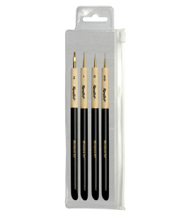 Набор из кистей ROUBLOFF - незаменимый комплект для росписи миниатюр и окрашивания сборных моделей. Разнообразие кистей позволяет работать в разных техниках с различными материалами. Анодированная алюминиевая обойма надежно защищает волос от слома и выпадения, что является важнейшим фактором при работе с мелкими деталями. Для удобства и более крепкой фиксации в руке место, где художник держит кисть, не окрашено. Легкая и бесшовная ручка утолщенной формы обеспечивает комфорт при долгой работе с кистью. С другой стороны заострённый край ручки можно использовать для поправки рисунка или в качестве шпателя.
