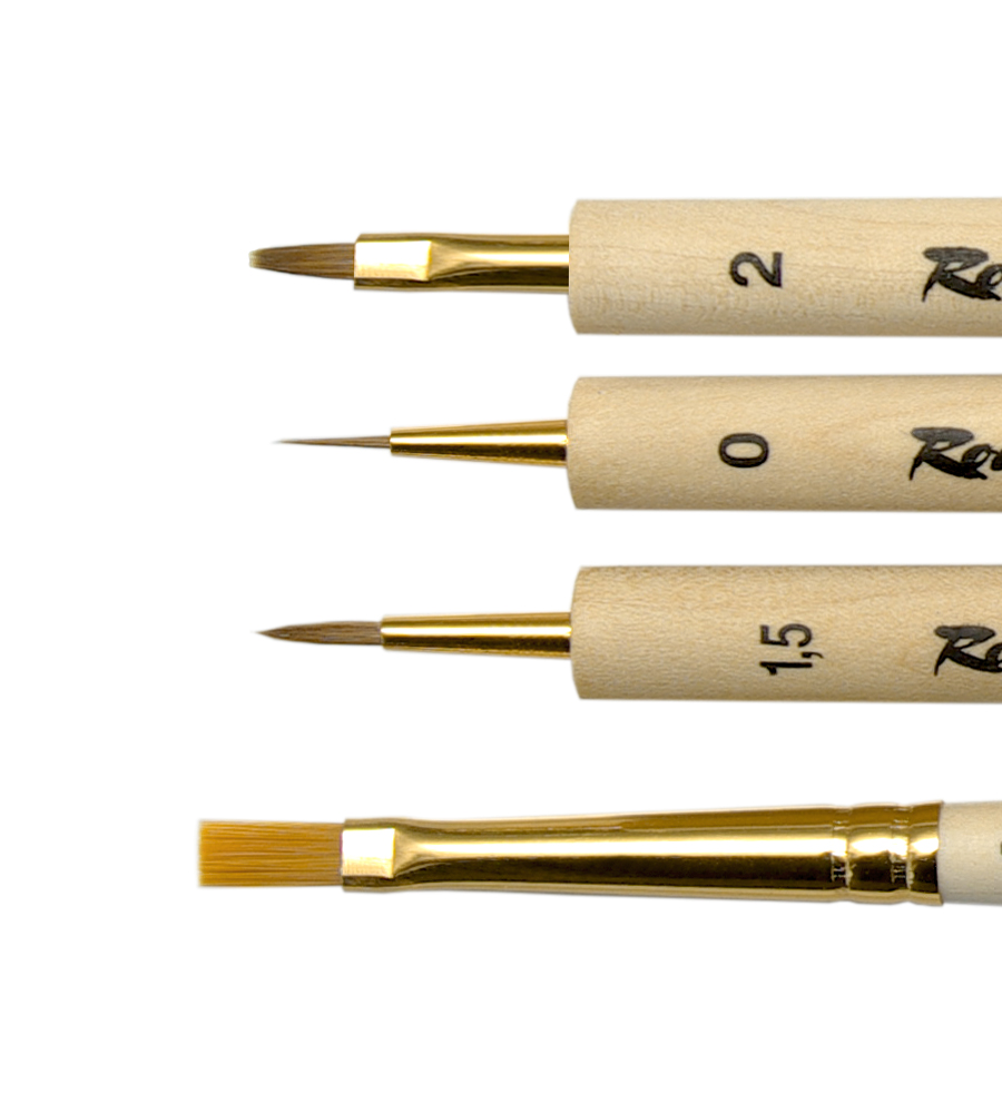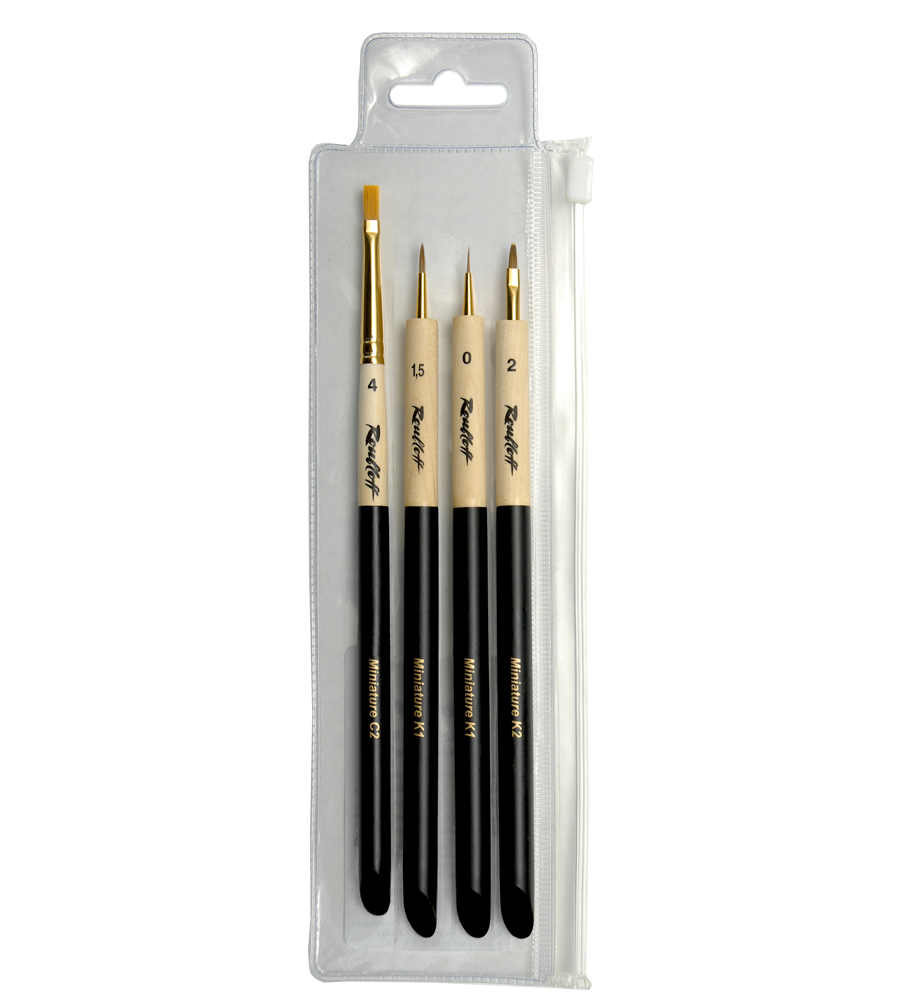 Вторая версия набора разработана в особенности для стендового моделизма и росписи военно-исторической миниатюры и будет незаменима в создании, как моделей техники, так и в росписи фигур всех масштабов. Волос колонка сочетает в себе упругость и эластичность, обеспечивая идеальный контроль над кистью, плавность скольжения и длительное сохранение рабочих свойств, а синтетический ворс обеспечит кисти долгую службу при выполнении более грубых работ. Состав набора: К2 №2 – плоская кисть из волоса колонка предназначена для нанесения базовых слоев краски, растушевки масляных красок (в том числе в технике масляных точек), для работ в технике сухая кисть (dry brush) на небольших площадях; K1 №0 - круглая кисть из волоса колонка идеальна для проработки мелких деталей, для обводки и оконтуривания (техники lining и highlights), а также для создания изображений малого размера; K1 №1,5 - круглая кисть из волоса колонка создана для работ со слоением, позволяет брать достаточное количество влаги для комфортной работы, при этом непревзойденно острый кончик позволяет прорабатывать любые детали и создавать реалистичные фактуры; С2 №4 - плоская кисть из рыжей синтетики позволит работать в технике сухой кисти на большой площади, подчеркивая существующую фактуру.