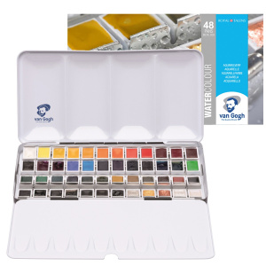 Акварель "Van Gogh" входит в одноименную коллекцию художественных товаров, созданную голландской компанией "Royal Talens" для начинающих художников и профессионалов. Акварельные краски под брендом "Van Gogh" были впервые выпущены в 1963 году. С тех пор специалисты компании постоянно вели работу по улучшению рабочих свойств красок. Сегодня акварель "Van Gogh" состоит только из светостойких пигментов высокой степени очистки и качественного гуммиарабика. Она прекрасно смешивается, достаточно быстро сохнет и не расплывается по бумаге, благодаря чему рисунок сохраняет четкость и отличается безупречными переходами от нежных, полупрозрачных оттенков к самым насыщенным. Кюветы акварели "Van Gogh" от "Royal Talens" имеют объём 1.3мл. Но это не значит, что краски в ней меньше, чем в классической кювете 2.5мл от многих известных производителей. Акварель для кювет "Van Gogh" предварительно запекается в специальных печах и нарезается вручную, после чего вставляется в кюветы. В процессе запекания из акварели выгоняются пузырьки воздуха, благодаря чему в объём 1.3мл умещается краски не меньше, чем в кюветы 2.5мл, в которые акварель налита в жидком виде и высушена естественным образом. Акварель "Van Gogh" выбирают многие профессиональные художники, вместе с тем, с ней легко работать и начинающим живописцам.