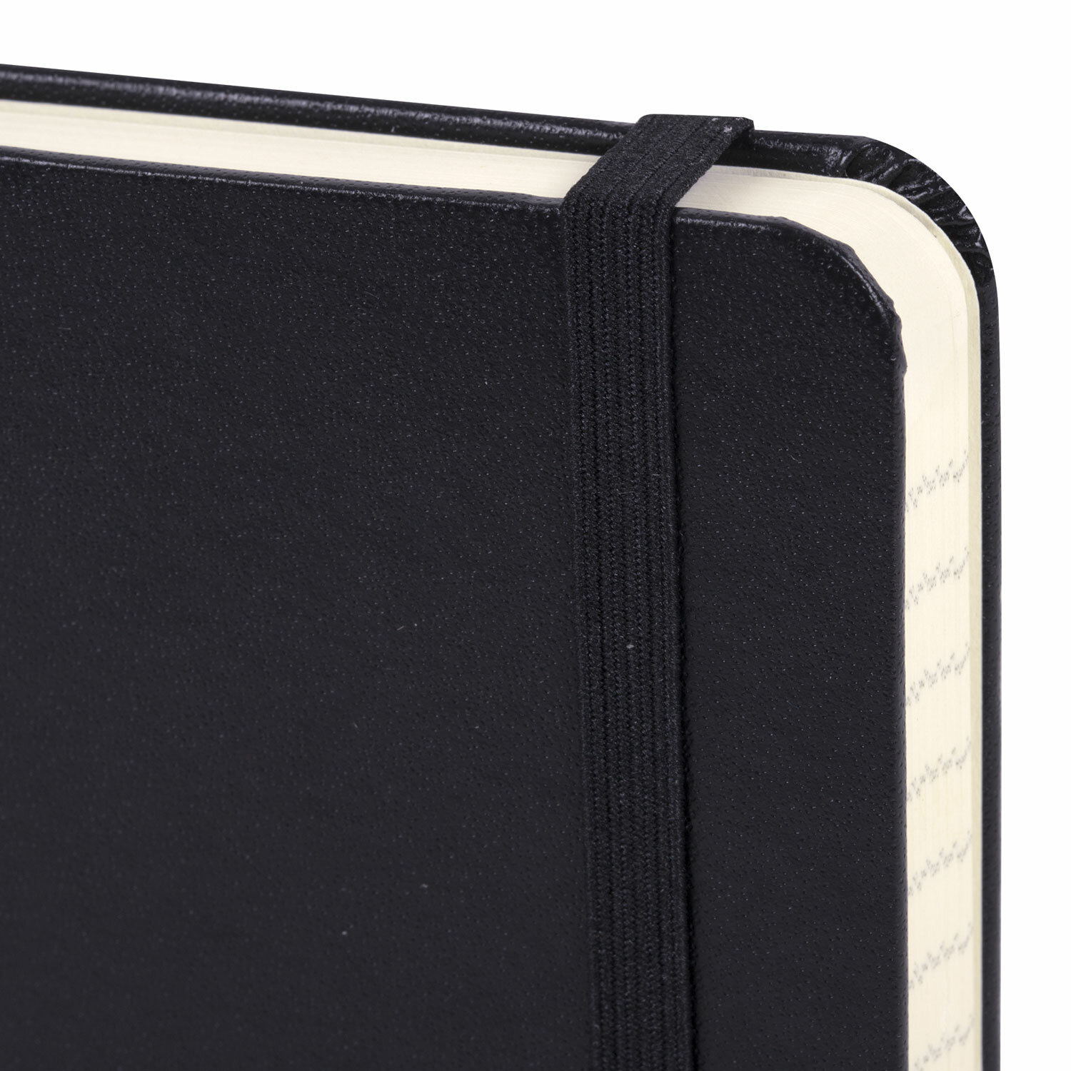 Твердая обложка стилизована под "классическую кожу". Имеет закругленные уголки, подходит для горячего тиснения и имеет резинку-фиксатор, благодаря чему не раскроется в сумке или портфеле и листы не помнутся. На внутренней стороне задней обложки есть декоративный конверт для разных мелочей в виде визиток, напоминалок или других милых и полезных мелочей. 96 листов позволят зафиксировать большой объем информации. Линовка блока в линию. Расстояние между линовками составляет 6 мм. Внутренний блок выполнен из офсета цвета слоновой кости плотностью 80 г/м2 и крепится к обложке с помощью книжного переплета. Дополнением является закладка-ляссе, с помощью которой при необходимости можно быстро открыть нужную страницу. Формат блокнота А6 (93х142 мм) позволит владельцу поместить его в кейс или сумку малых габаритов.