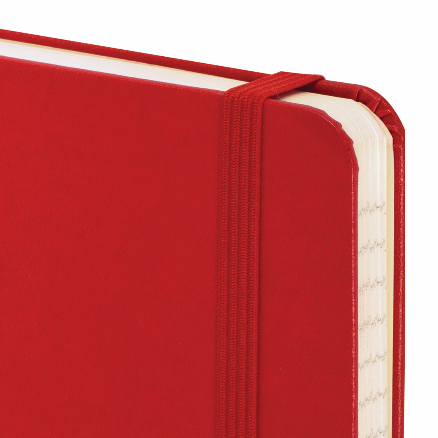 Твердая обложка стилизована под "классическую кожу". Имеет закругленные уголки, подходит для горячего тиснения и имеет резинку-фиксатор, благодаря чему не раскроется в сумке или портфеле и листы не помнутся. На внутренней стороне задней обложки есть декоративный конверт для разных мелочей в виде визиток, напоминалок или других милых и полезных мелочей. 96 листов позволят зафиксировать большой объем информации. Линовка блока в линию. Расстояние между линовками составляет 6 мм. Внутренний блок выполнен из офсета цвета слоновой кости плотностью 80 г/м2 и крепится к обложке с помощью книжного переплета. Дополнением является закладка-ляссе, с помощью которой при необходимости можно быстро открыть нужную страницу. Формат блокнота А6 (93х142 мм) позволит владельцу поместить его в кейс или сумку малых габаритов.