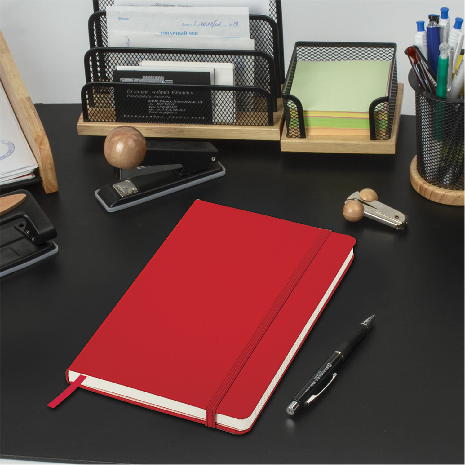 Твердая обложка стилизована под "классическую кожу". Имеет закругленные уголки, подходит для горячего тиснения и имеет резинку-фиксатор, благодаря чему не раскроется в сумке или портфеле и листы не помнутся. На внутренней стороне задней обложки есть декоративный конверт для разных мелочей в виде визиток, напоминалок или других милых и полезных мелочей. 96 листов позволят зафиксировать большой объем информации. Блок без линовки дает возможность аккуратно заполнить цифровые значения, вести записи, а также нанести чертежные и художественные зарисовки. Внутренний блок выполнен из офсета цвета слоновой кости плотностью 80 г/м2 и крепится к обложке с помощью книжного переплета. Дополнением является закладка-ляссе, с помощью которой при необходимости можно быстро открыть нужную страницу. Формат блокнота А5 (130х210 мм) позволит владельцу поместить его в кейс или сумку малых габаритов.
