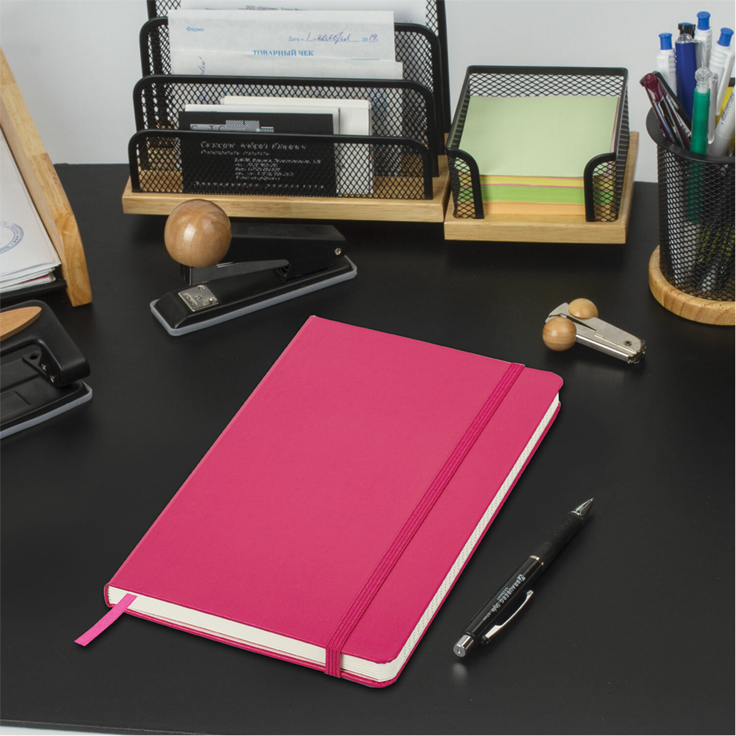 Твердая обложка стилизована под "классическую кожу". Имеет закругленные уголки, подходит для горячего тиснения и имеет резинку-фиксатор, благодаря чему не раскроется в сумке или портфеле и листы не помнутся. На внутренней стороне задней обложки есть декоративный конверт для разных мелочей в виде визиток, напоминалок или других милых и полезных мелочей. 96 листов позволят зафиксировать большой объем информации. Блок без линовки дает возможность аккуратно заполнить цифровые значения, вести записи, а также нанести чертежные и художественные зарисовки. Внутренний блок выполнен из офсета цвета слоновой кости плотностью 80 г/м2 и крепится к обложке с помощью книжного переплета. Дополнением является закладка-ляссе, с помощью которой при необходимости можно быстро открыть нужную страницу. Формат блокнота А5 (130х210 мм) позволит владельцу поместить его в кейс или сумку малых габаритов.