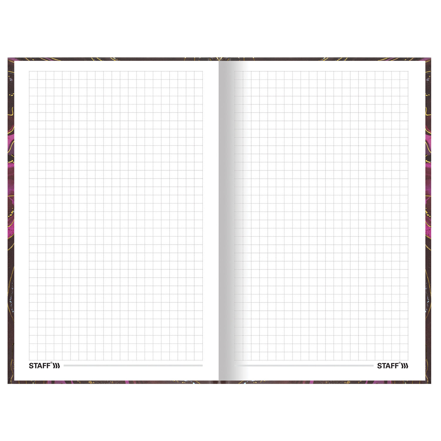 Жесткая обложка с матовой ламинацией и тиснением фольгой долго сохраняет привлекательный внешний вид и позволяет делать записи на весу. 80 листов позволят зафиксировать большой объем информации. Линовка блока в клетку дает возможность аккуратно заполнить цифровые значения, а также нанести чертежные зарисовки.