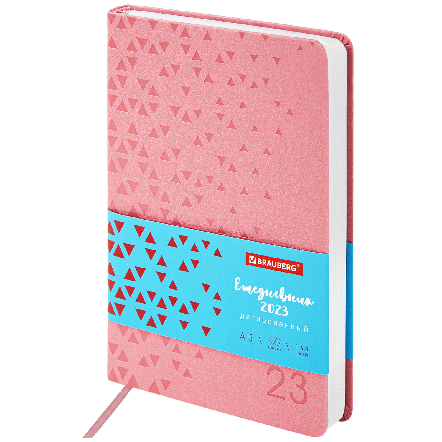 Внутренний блок включает 168 листов белой бумаги плотностью 70 г/м2. Каждая страничка имеет перфорированный угол. Благодаря стандартному формату А5 (138х213 мм) датированный ежедневник удобно использовать как в офисе, так и на выездных деловых встречах. Мягкая (интегральная) обложка, под фактурную кожу розового цвета с легким блеском имеет декоративное тиснение, что придает ежедневнику особый шарм. Материал обложки подходит для горячего тиснения. Дополнением является закладка-ляссе, с помощью которой при необходимости можно быстро открыть ежедневник на нужной странице. Помимо прочего, ежедневник снабжен обширным справочным материалом.Датированный ежедневник BRAUBERG "Glance" идеально подойдет для офисных работников и людей, занимающихся бизнесом, ценящих свое драгоценное время.