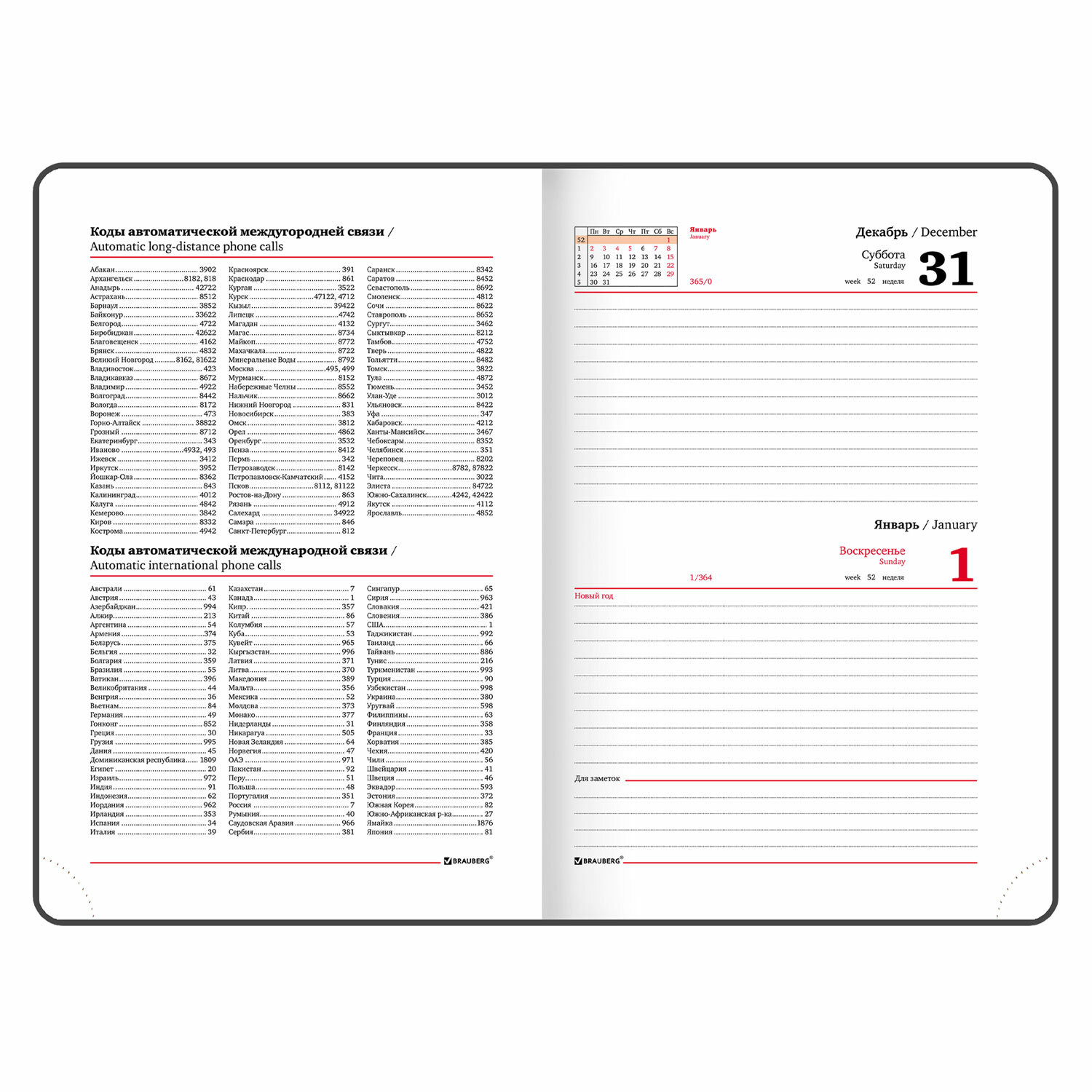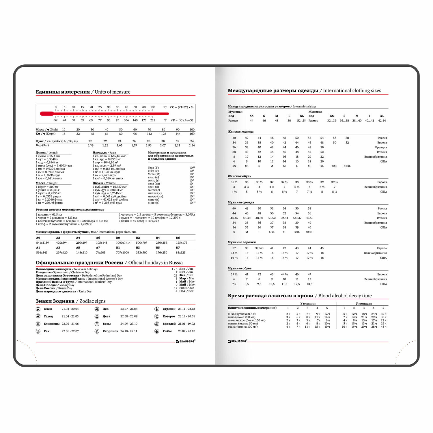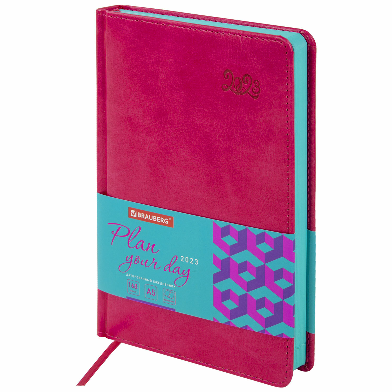 Внутренний блок включает 168 листов белой бумаги плотностью 70 г/м2. Каждая страничка имеет перфорированный угол. Благодаря стандартному формату А5 (138х213 мм) ежедневник удобно использовать как в офисе, так и на выездных деловых встречах. Твердая обложка стилизована под гладкую кожу. Подходит для горячего тиснения. Срез и форзац ежедневника окрашены на контрасте с цветом обложки, что придает ему особый шарм. Дополнением является закладка-ляссе, с помощью которой при необходимости можно быстро открыть ежедневник на нужной странице. Помимо прочего, ежедневник снабжен обширным справочным материалом.Датированный ежедневник BRAUBERG "Rainbow" идеально подойдет для офисных работников и людей, занимающихся бизнесом, ценящих свое драгоценное время.