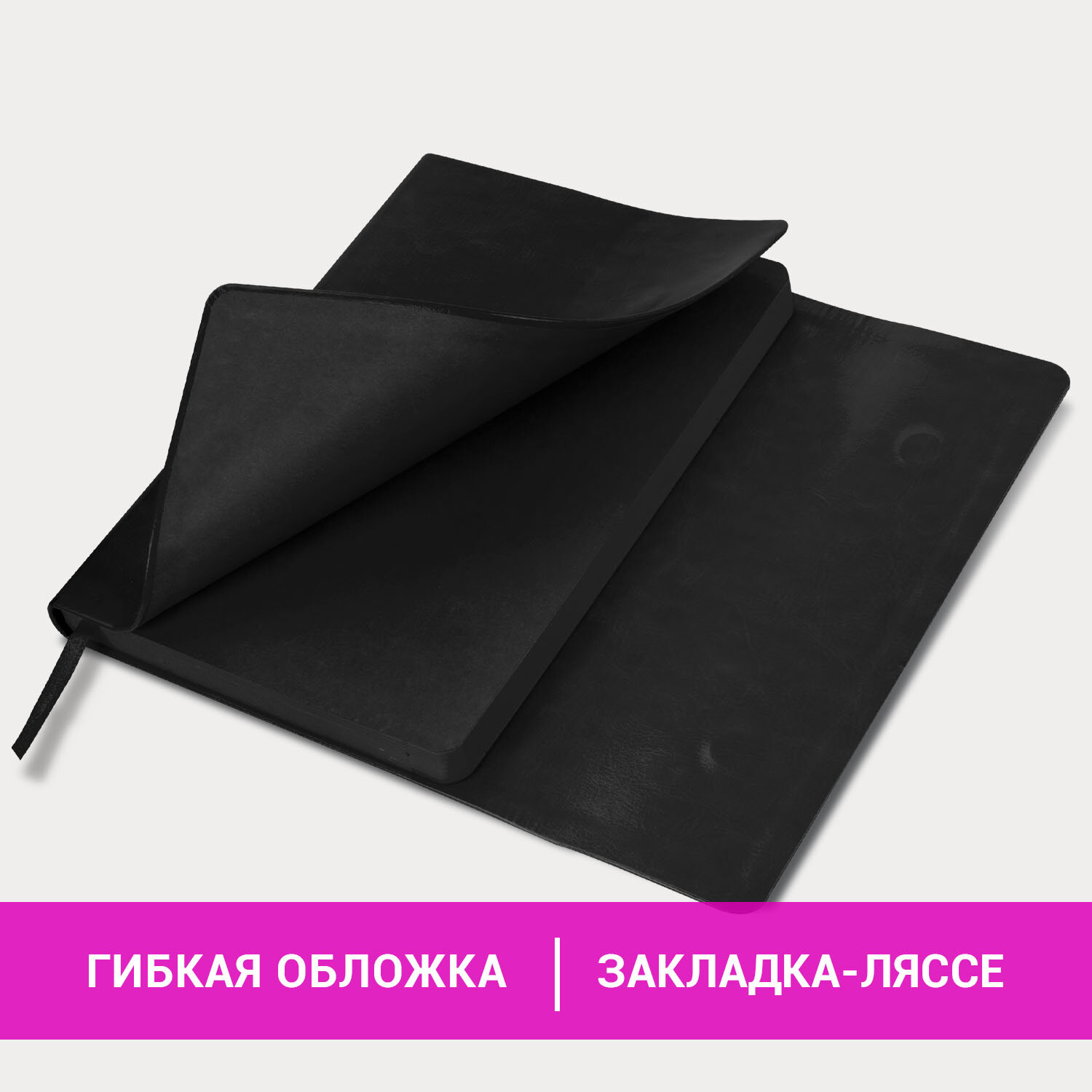 Внутренний блок включает 160 листов белой бумаги плотностью 70 г/м2. Каждая страничка имеет перфорированный угол. Благодаря стандартному формату А5 ежедневник удобно использовать как в офисе, так и на выездных деловых встречах. Интегральная (мягкая) обложка, выполненная в классическом черном цвете и стилизованная под гладкую кожу, фиксируется магнитным клапаном, поэтому ежедневник не откроется в сумке или портфеле и страницы не помнутся. Подходит для горячего тиснения. Дополнением является закладка-ляссе, с помощью которой при необходимости можно быстро открыть ежедневник на нужной странице. Помимо прочего ежедневник снабжен обширным справочным материалом.