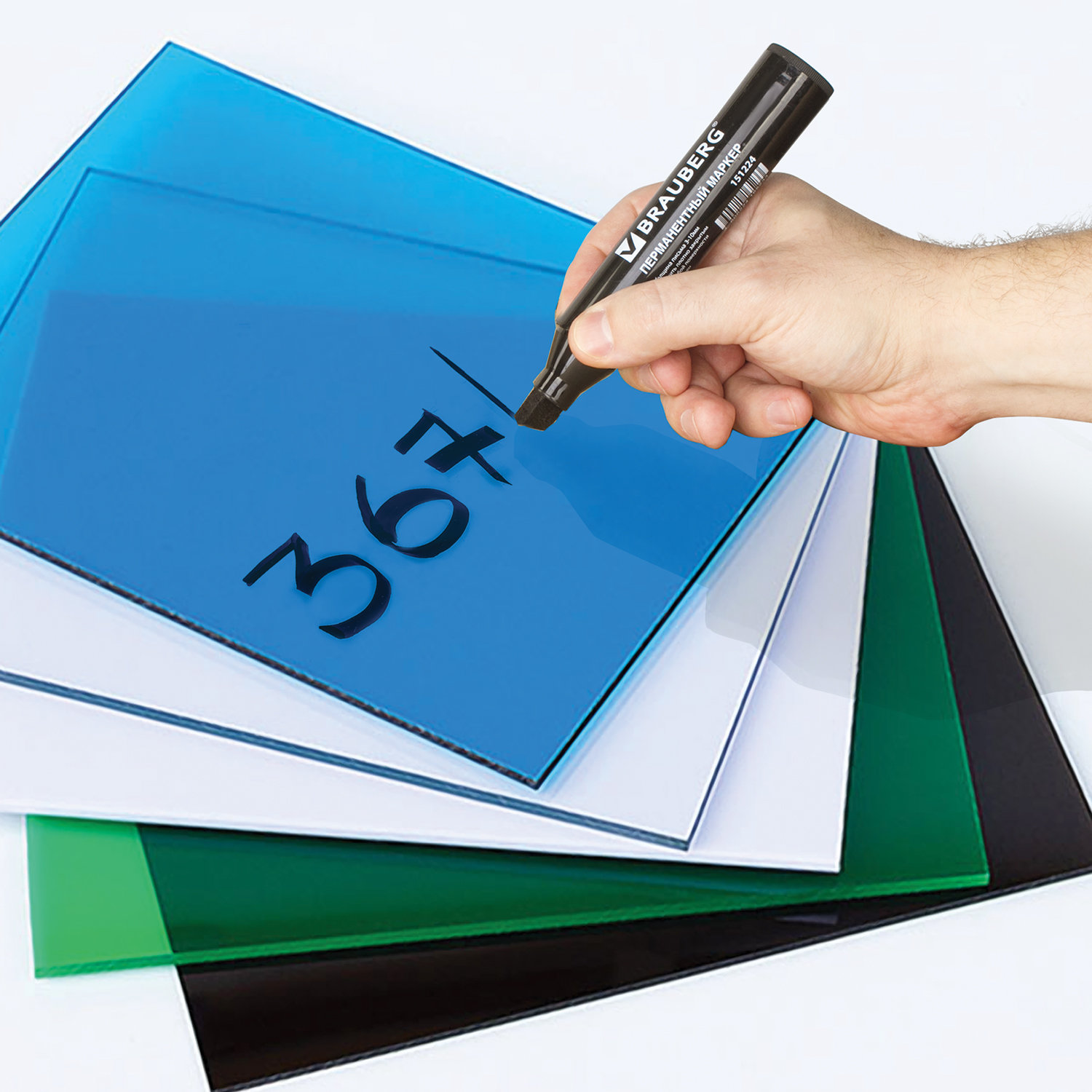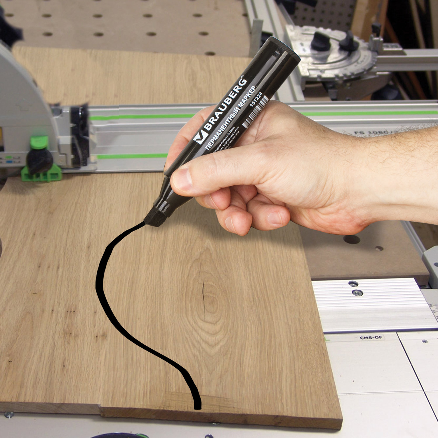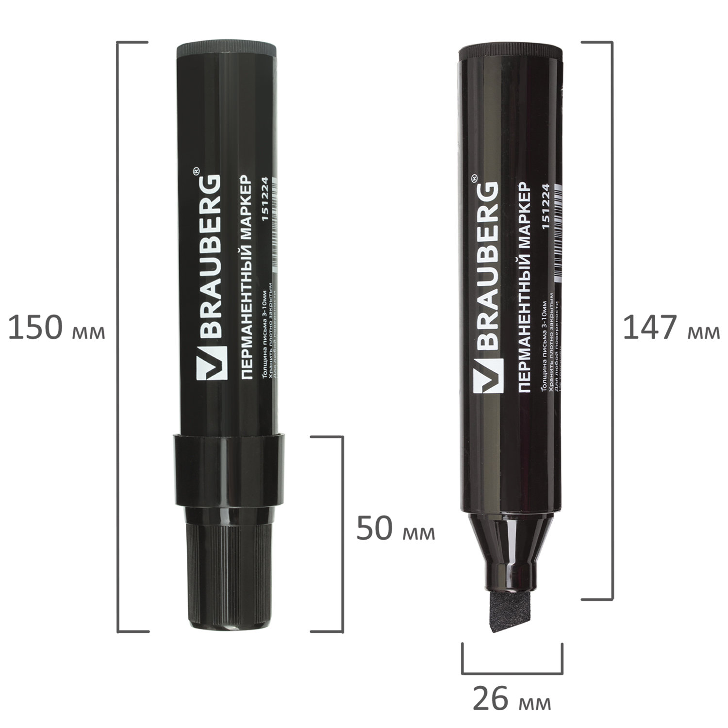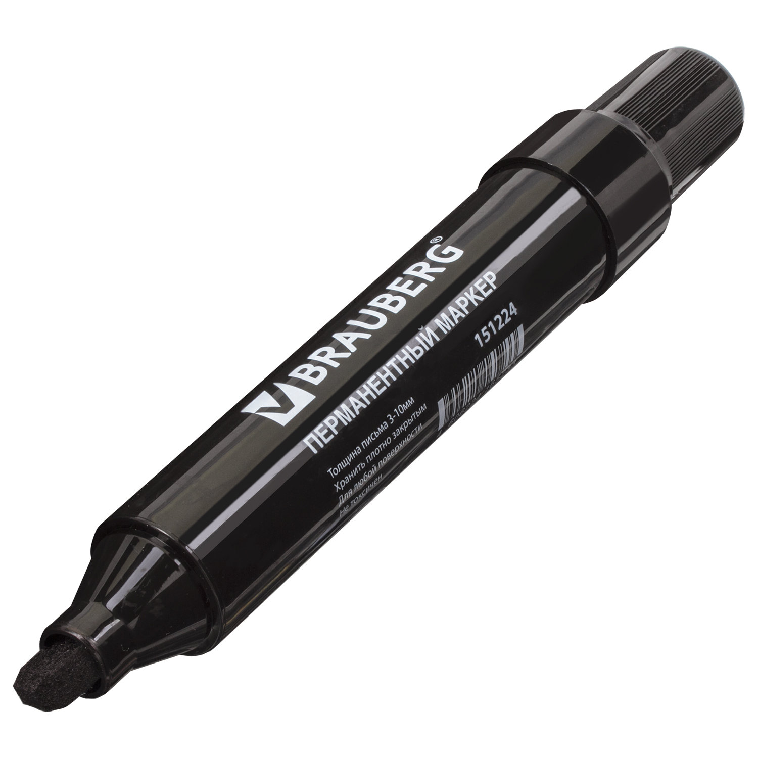 Маркер перманентный черного цвета обладает круглой формой корпуса из пластика, диаметр которого 26 мм. Толщина линии письма - 3-10 мм в зависимости от угла наклона. Особая нестираемая основа перманентного маркера обеспечивает такие качества, как стойкость к воздействию воды, ультрафиолета, низких и высоких температур. Благодаря спиртовой основе чернила быстро сохнут и не смазываются. Износостойкий фетровый наконечник устойчив к повреждениям и обеспечивает экономный расход чернил. Изделие не перезаправляется. Плотно закрывается колпачком, что предотвращает высыхание наконечника и чернил. Цвет корпуса и колпачка соответствует цвету чернил.
