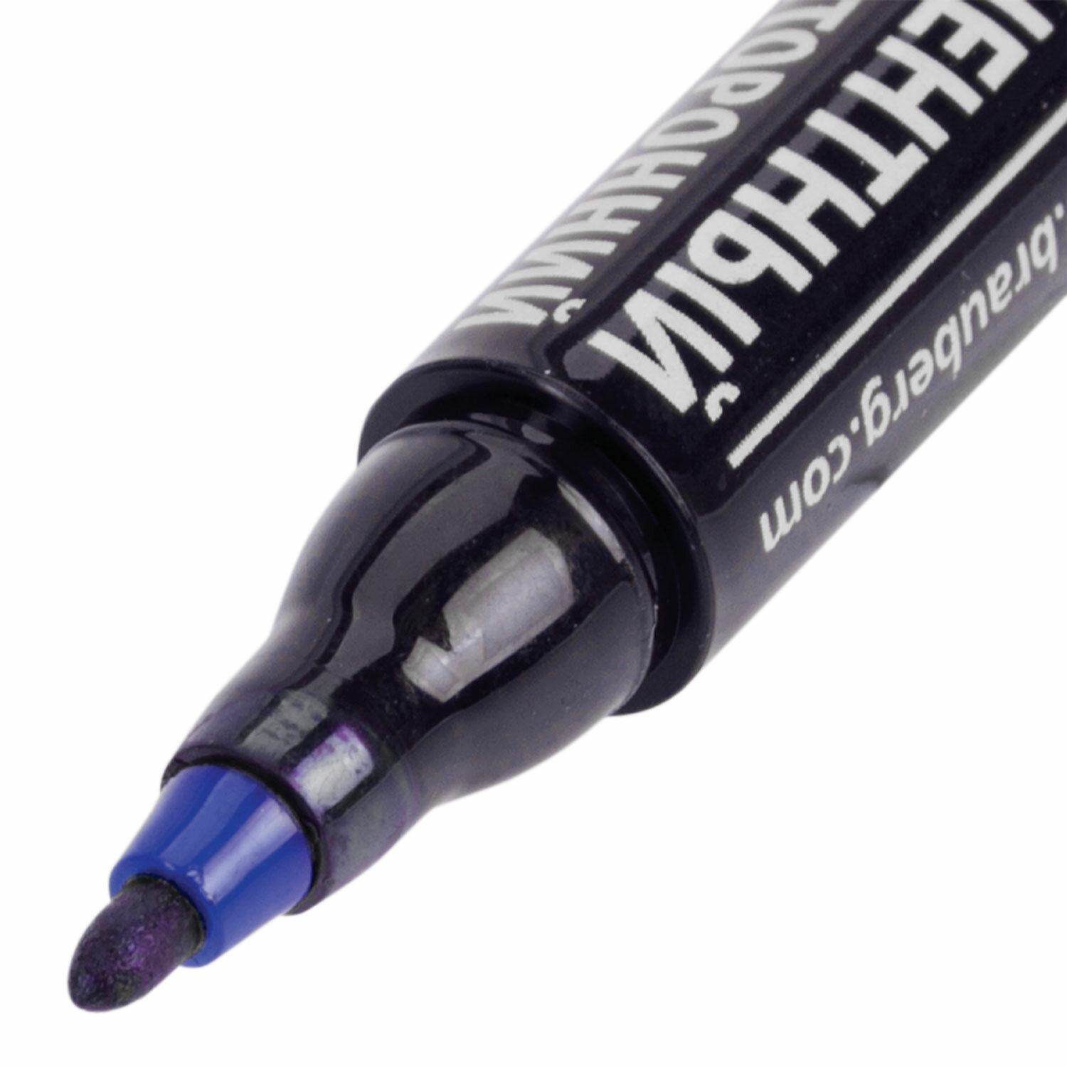 Маркер перманентный двусторонний синего цвета обладает круглой формой корпуса из пластика, диаметр которого 12 мм. Толщина линии письма - 2-4 мм в зависимости от наконечника. Особая нестираемая основа перманентного маркера обеспечивает такие качества, как стойкость к воздействию воды, ультрафиолету, низких и высоких температур. Благодаря спиртовой основе чернила быстро сохнут и не размазываются. Износостойкий фетровый наконечник устойчив к повреждениям и обеспечивает экономный расход чернил. Изделие не перезаправляется. Плотно закрывается колпачком, что предотвращает высыхание наконечника и чернил. Цвет колпачка соответствует цвету чернил.