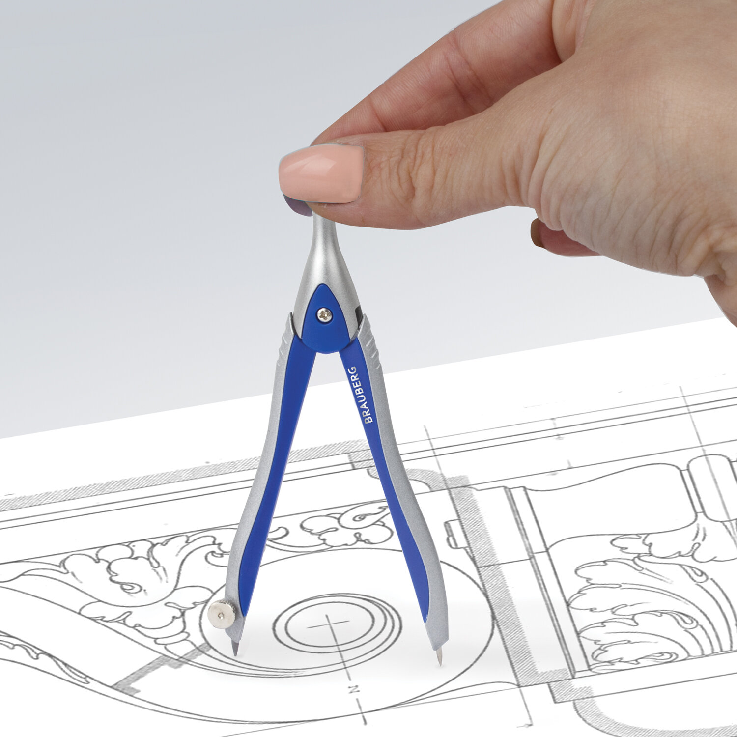 Изготовлена из металла. Основной цвет корпуса - серебристый. Упаковка - пластиковый пенал с европодвесом, который гарантирует безопасность от механических повреждений школьных рюкзаков и сумок. Максимальный диаметр окружности 150 мм.