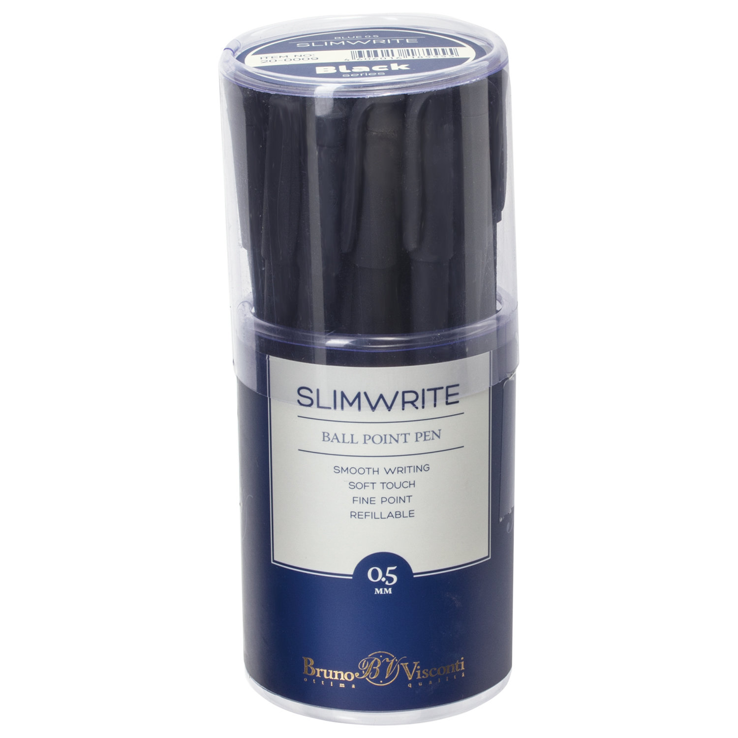 Ручки серии SlimWrite имеют удобный для захвата тонкий пластиковый корпус круглой формы и стильные хромированные детали. Текстурированное покрытие c эффектом silk-touch делает письмо максимально комфортным, позволяет кисти не уставать при письме. Корпус снабжен колпачком с клип-зажимом, который при необходимости можно закрепить на пенале или ежедневнике.Пишущий узел Premec (Швейцария) с толщиной 0,5 мм проводит тонкую аккуратную линию толщиной 0,3 мм. Длина сменного стержня - 134 мм. Синие водостойкие немецкие чернила Dokumental производятся в Германии, они не тускнеют и не выцветают со временем.