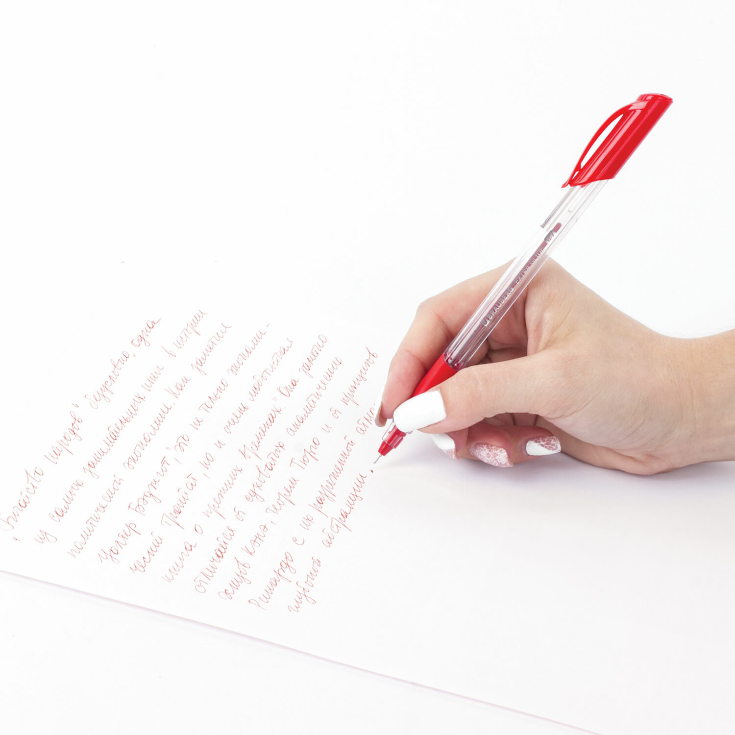 Трехгранная одноразовая шариковая масляная ручка в прозрачном корпусе с резиновым держателем в области захвата. Чернила ультрапониженной вязкости и надежный пишущий узел обеспечивают мягкое и комфортное письмо. Диаметр пишущего узла 0,7 мм создает тонкую линию письма 0,35 мм. Цвет чернил - красный. Лаконичный дизайн соответствует офисному стилю.