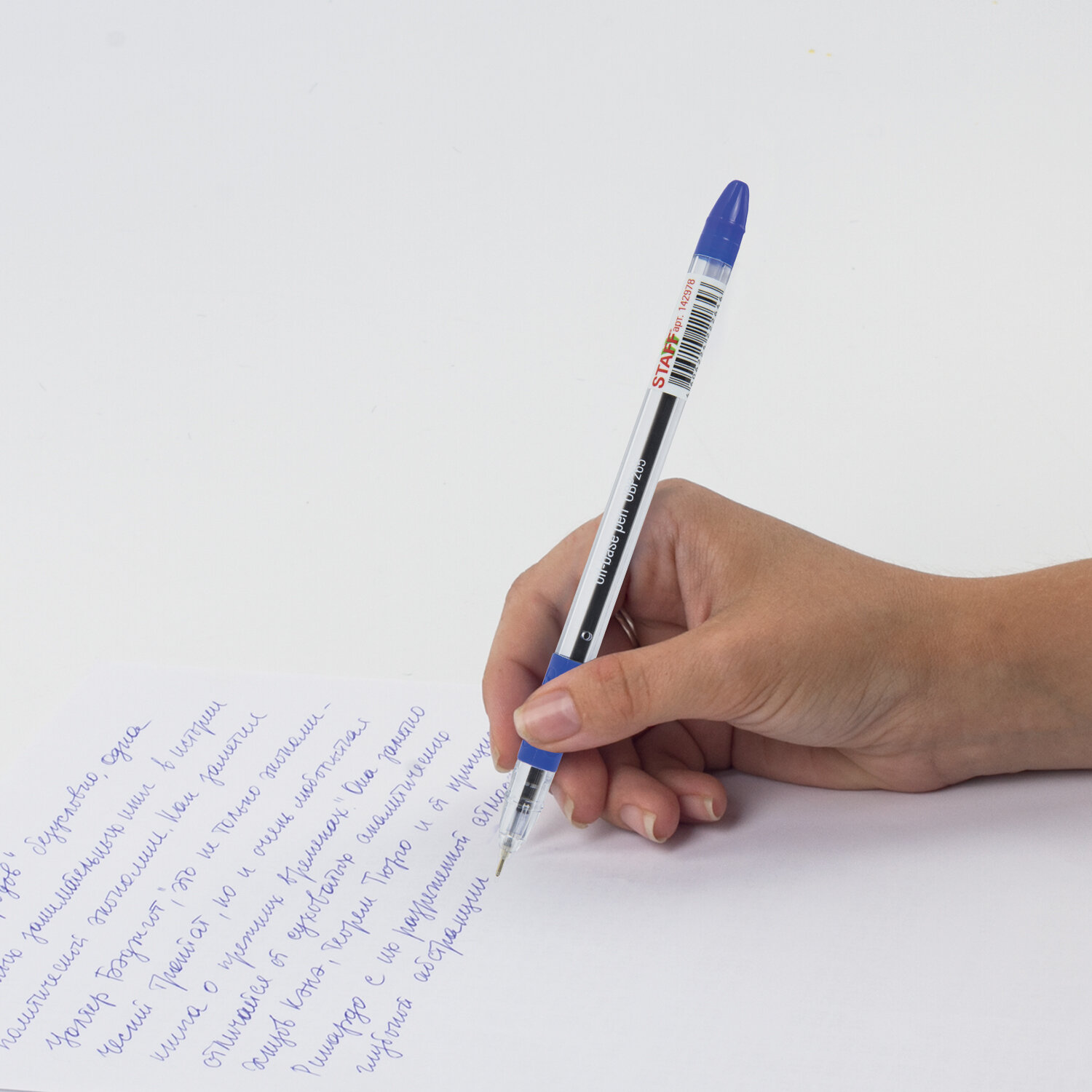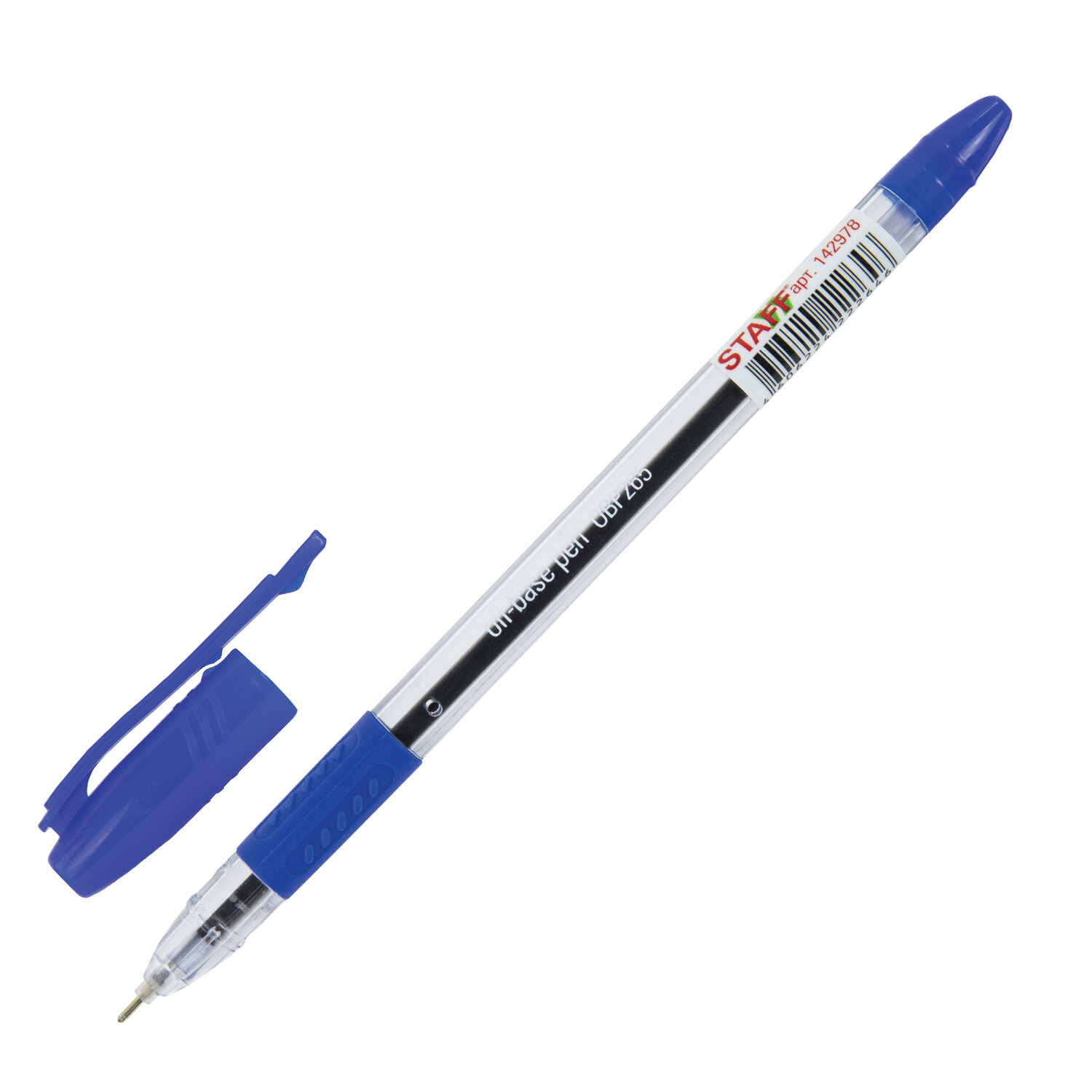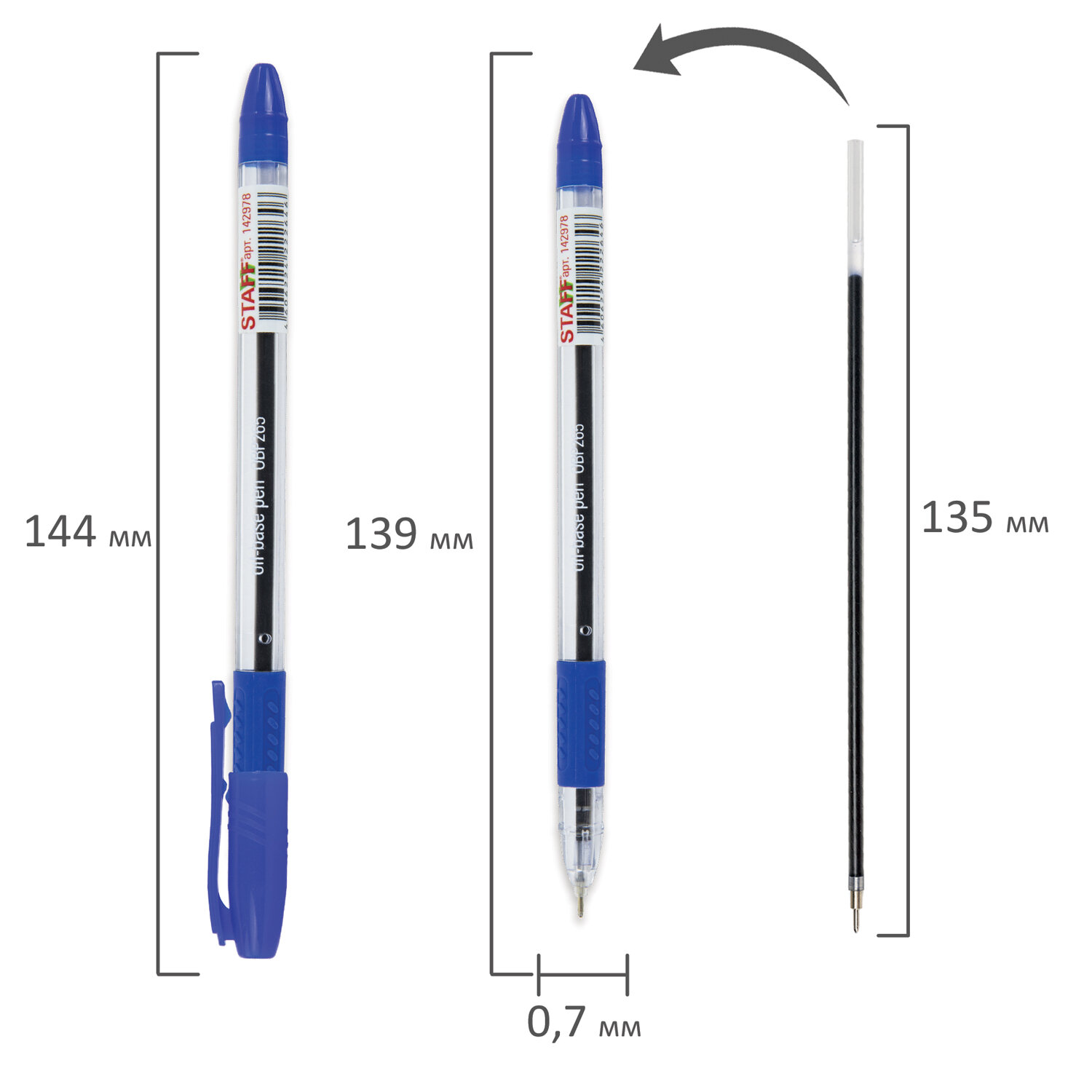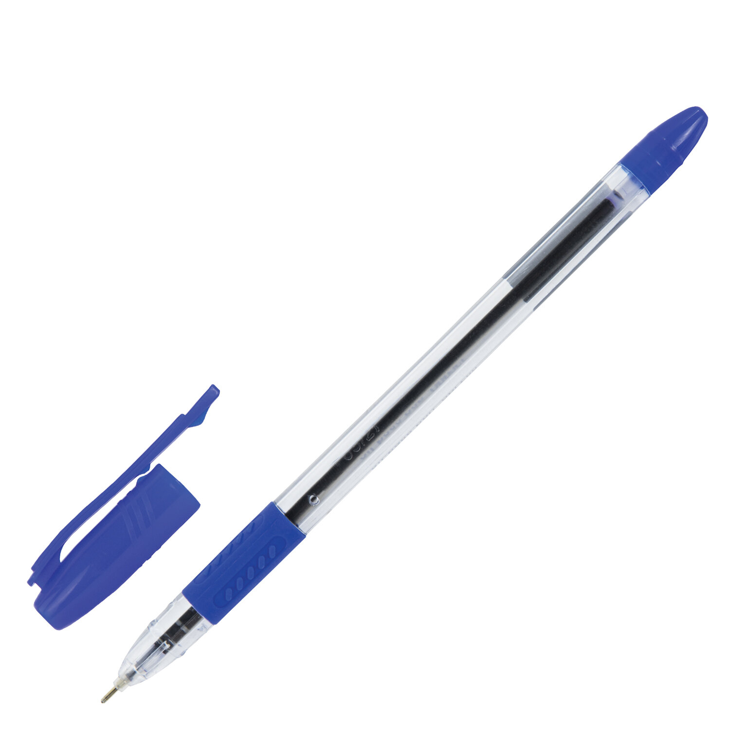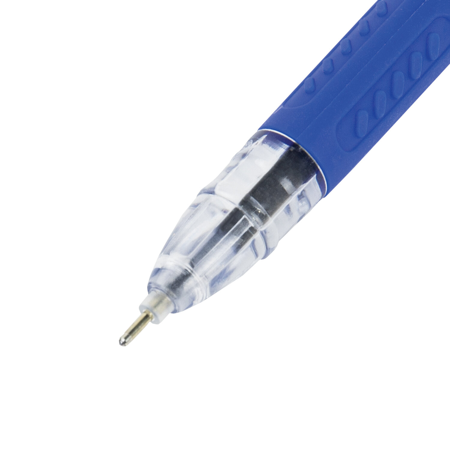 Ручка в прозрачном круглом корпусе с резиновым держателем в зоне захвата и деталями в цвет чернил. Сменный стержень длиной 135 мм с игольчатым наконечником. Диаметр пишущего узла 0,7 мм создает тонкую линию письма 0,35 мм. Лаконичный дизайн соответствует офисному стилю.