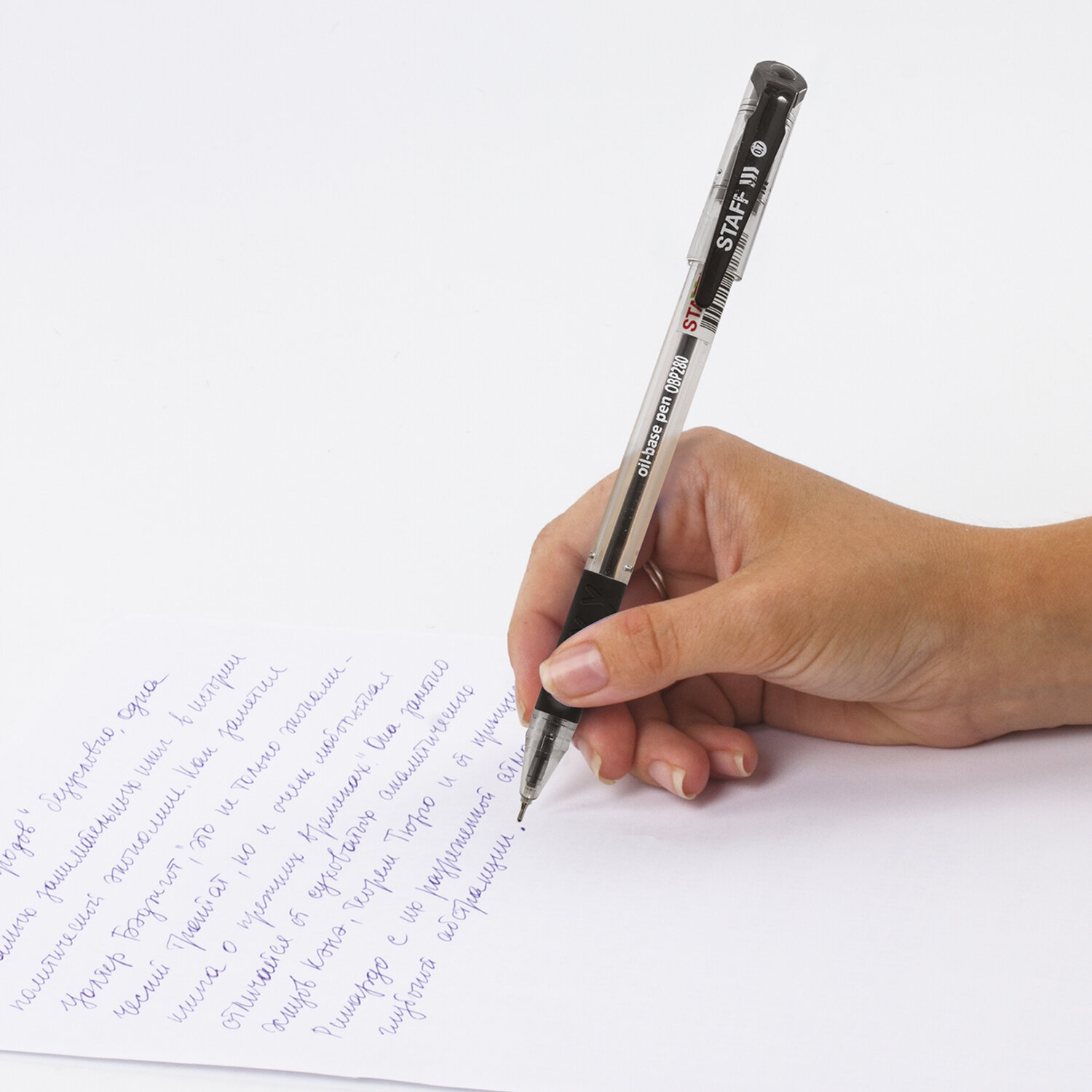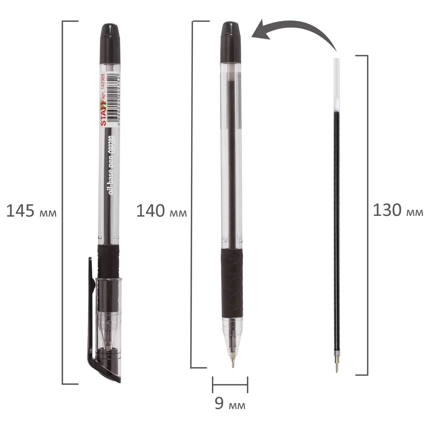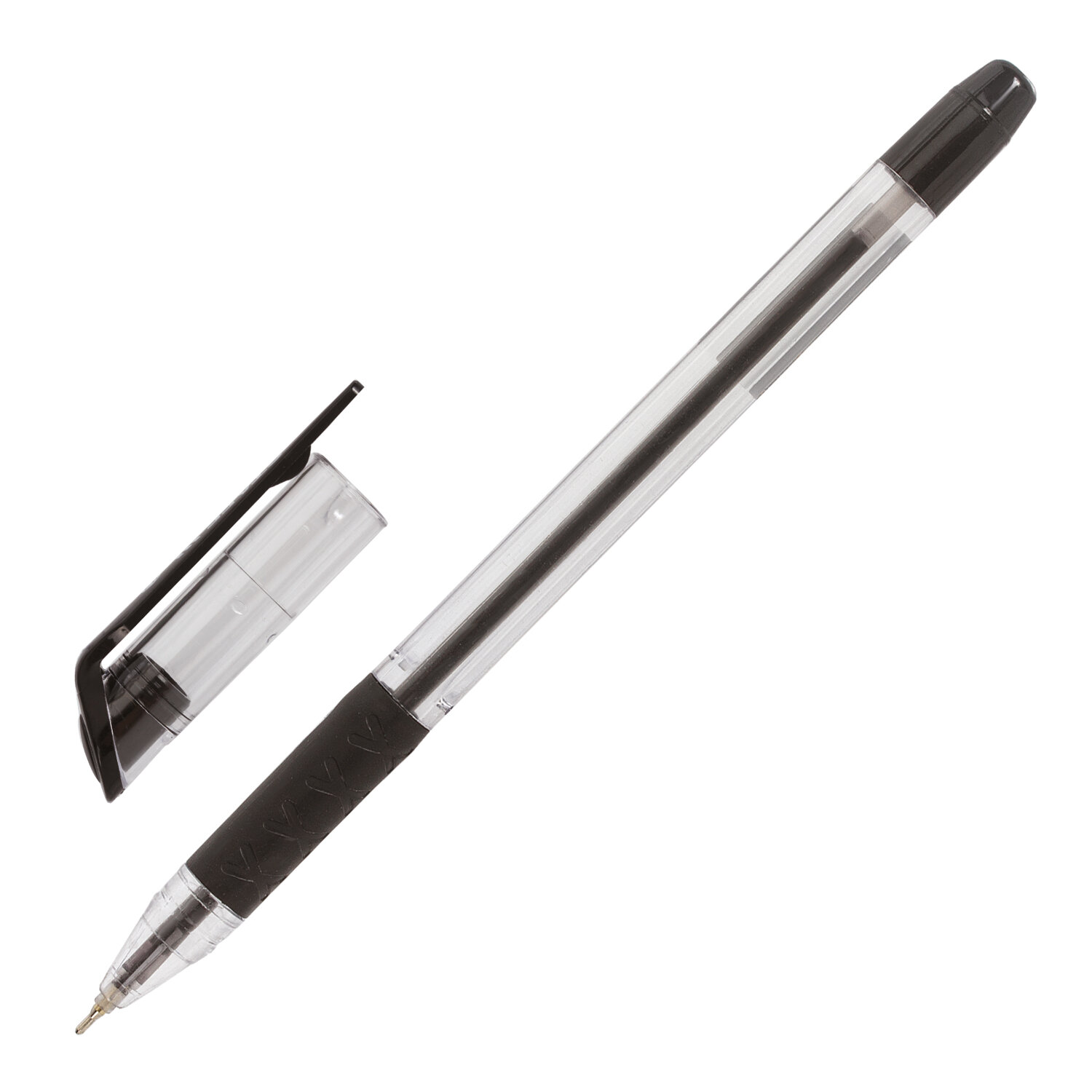Ручка шариковая масляная с прозрачным круглым корпусом и резиновым грипом для удобства письма, исключающим скольжение пальцев. Заправлена высококачественными чернилами на масляной основе, что гарантирует лёгкое и аккуратное письмо без каких-либо усилий. Сменный стержень 130 мм в сочетании с игольчатым наконечником обеспечивают мягкое и тонкое письмо. Толщина линии письма 0,35 мм, диаметр пишущего узла 0,7 мм. Цвет чернил - черный. Прозрачный корпус с черными деталями соответствует офисному стилю.
