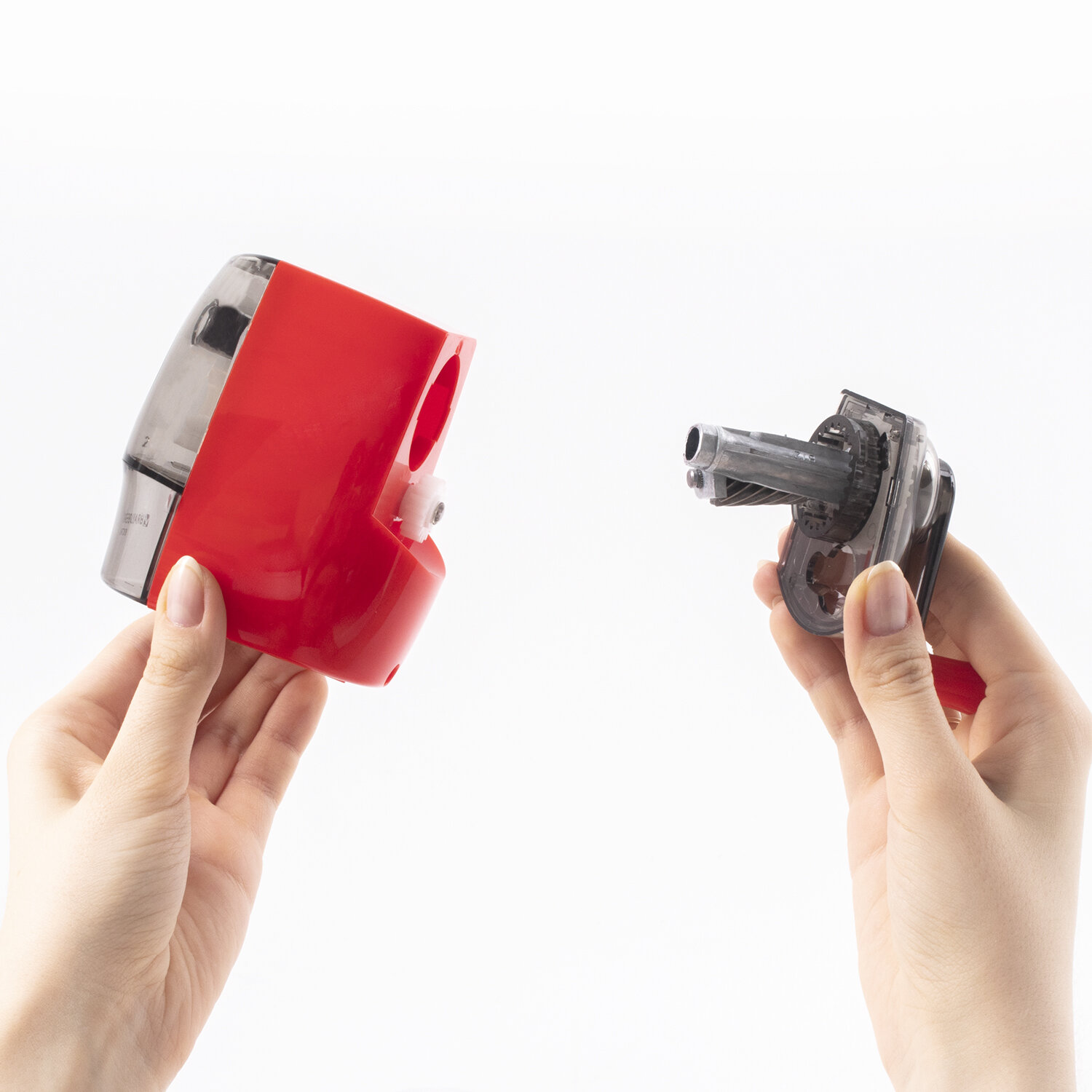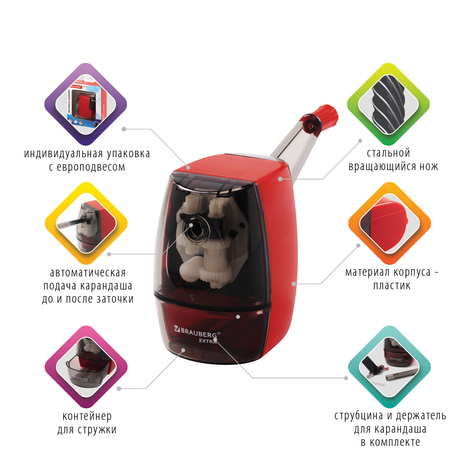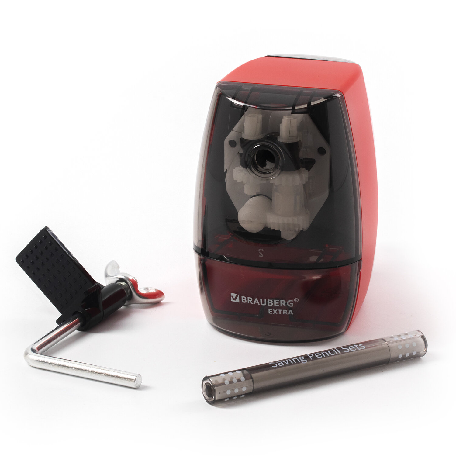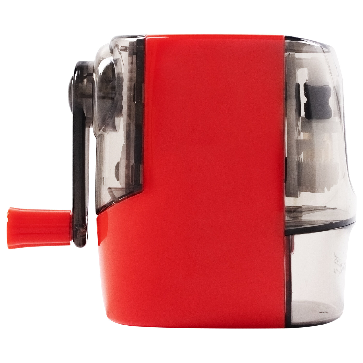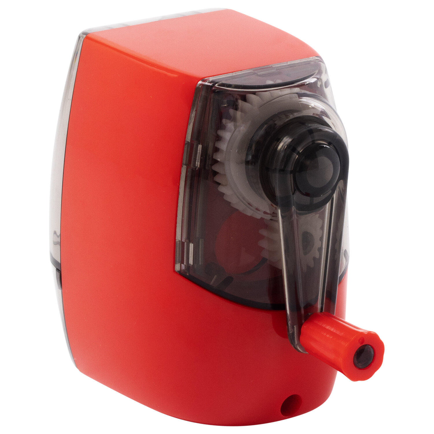 Корпус точилки выполнен из пластика. Вращающийся роликовый нож из высококачественной стали обеспечивает быструю и острую заточку. Точилка имеет одно отверстие и вместительный контейнер для сбора стружки. Диаметр затачиваемого карандаша - 8 мм. Размер точилки: 64х89х94 мм. В комплекте с точилкой идёт струбцина для крепления точилки к столу и пластиковый держатель для карандаша.