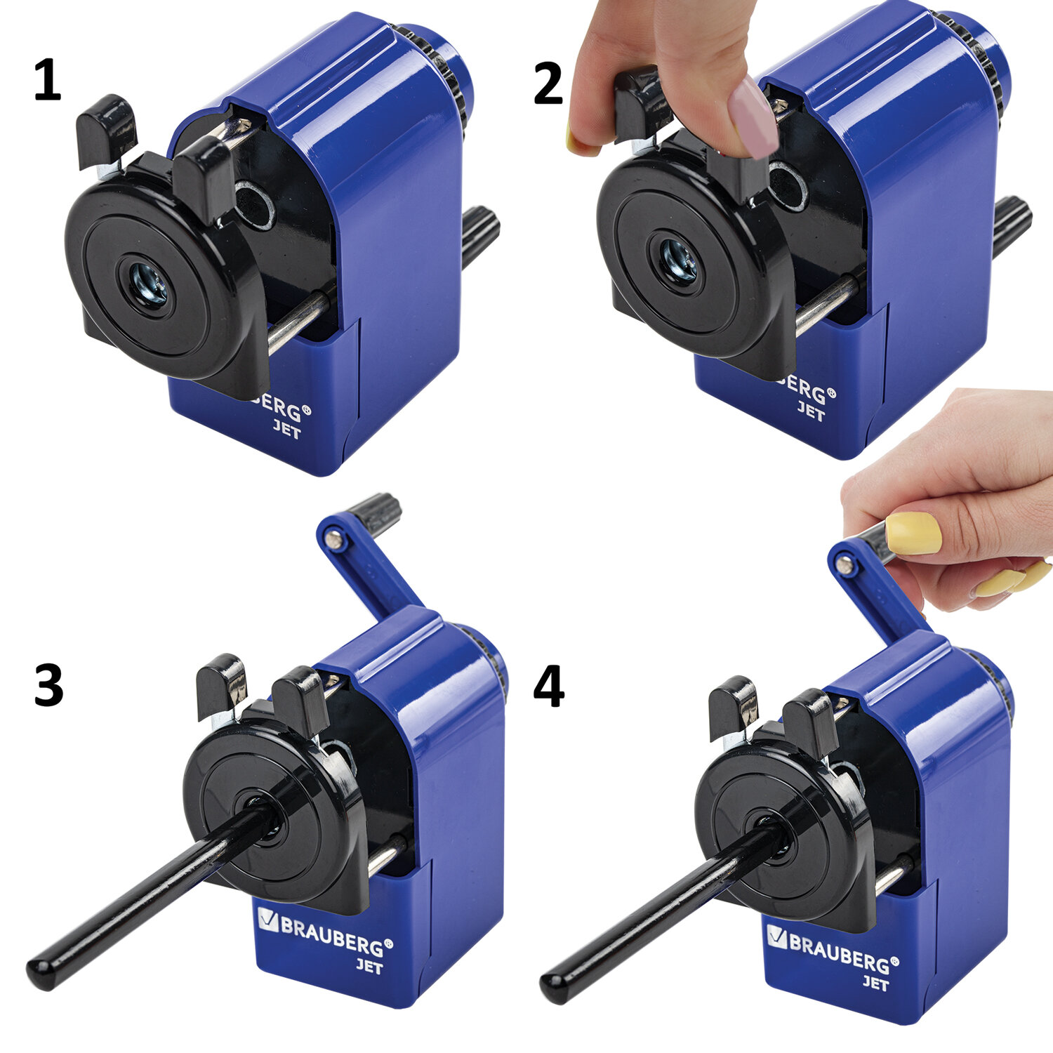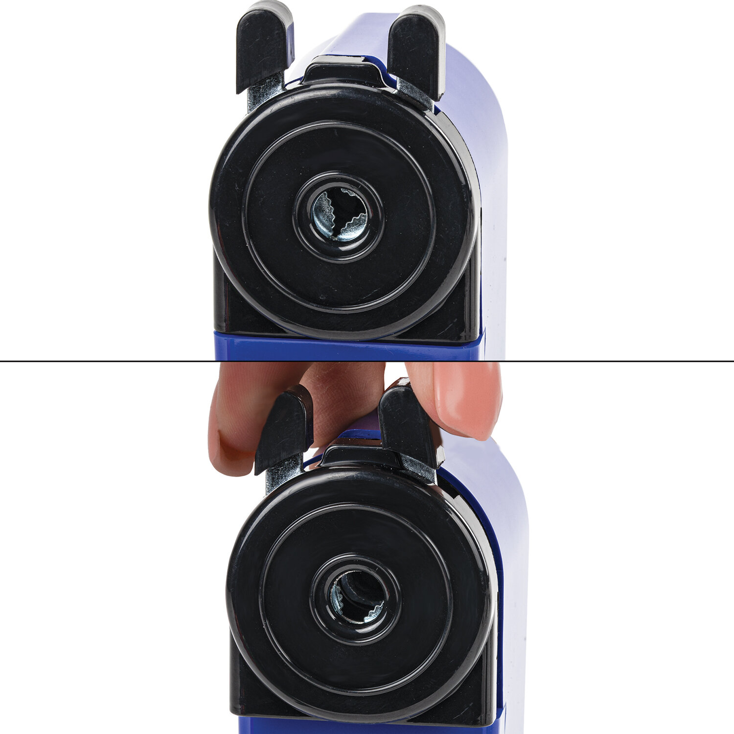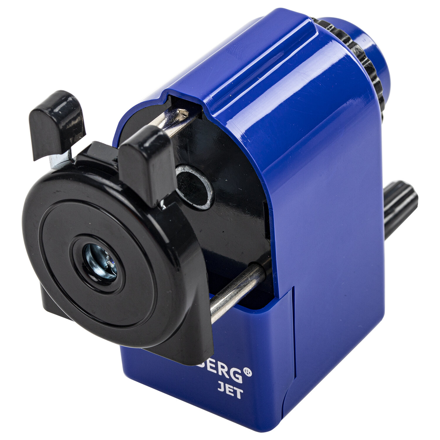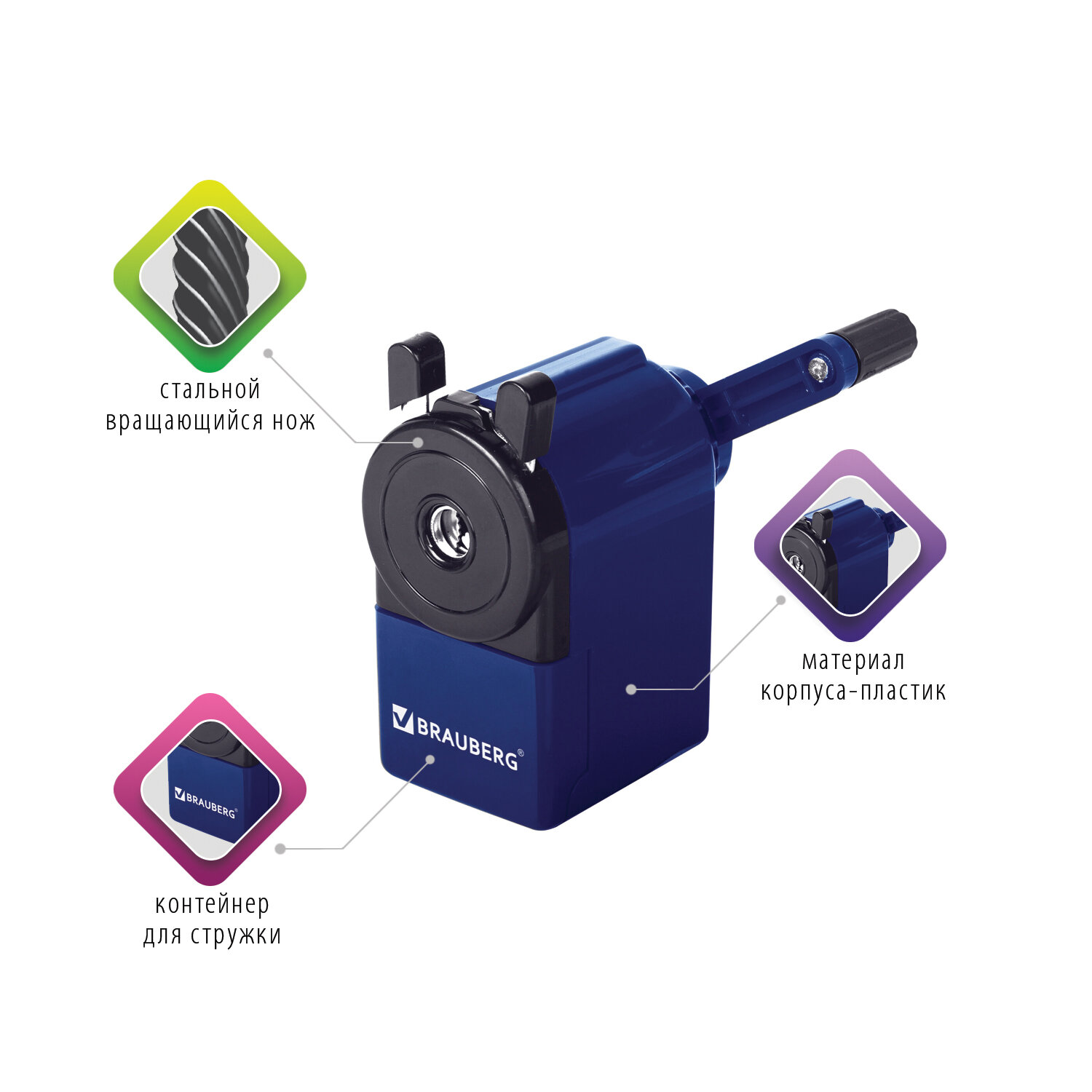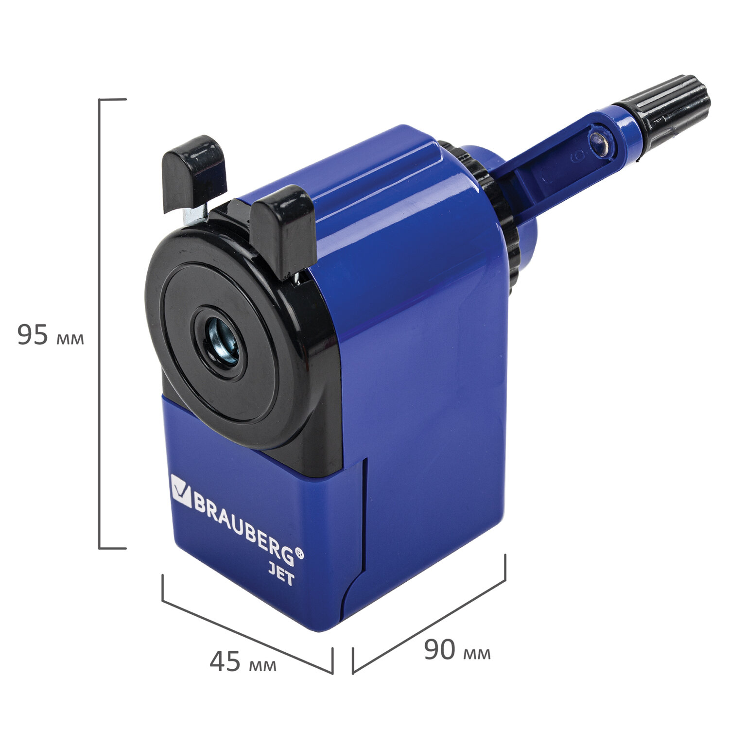 Корпус точилки выполнен из пластика синего цвета. Вращающийся роликовый нож из высококачественной стали обеспечивает быструю и острую заточку. Точилка имеет одно отверстие и вместительный контейнер для сбора стружки. Диаметр затачиваемого карандаша - 8 мм. Размер: 95х45х90 мм.