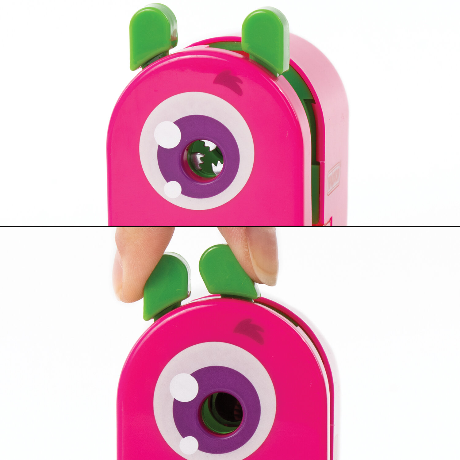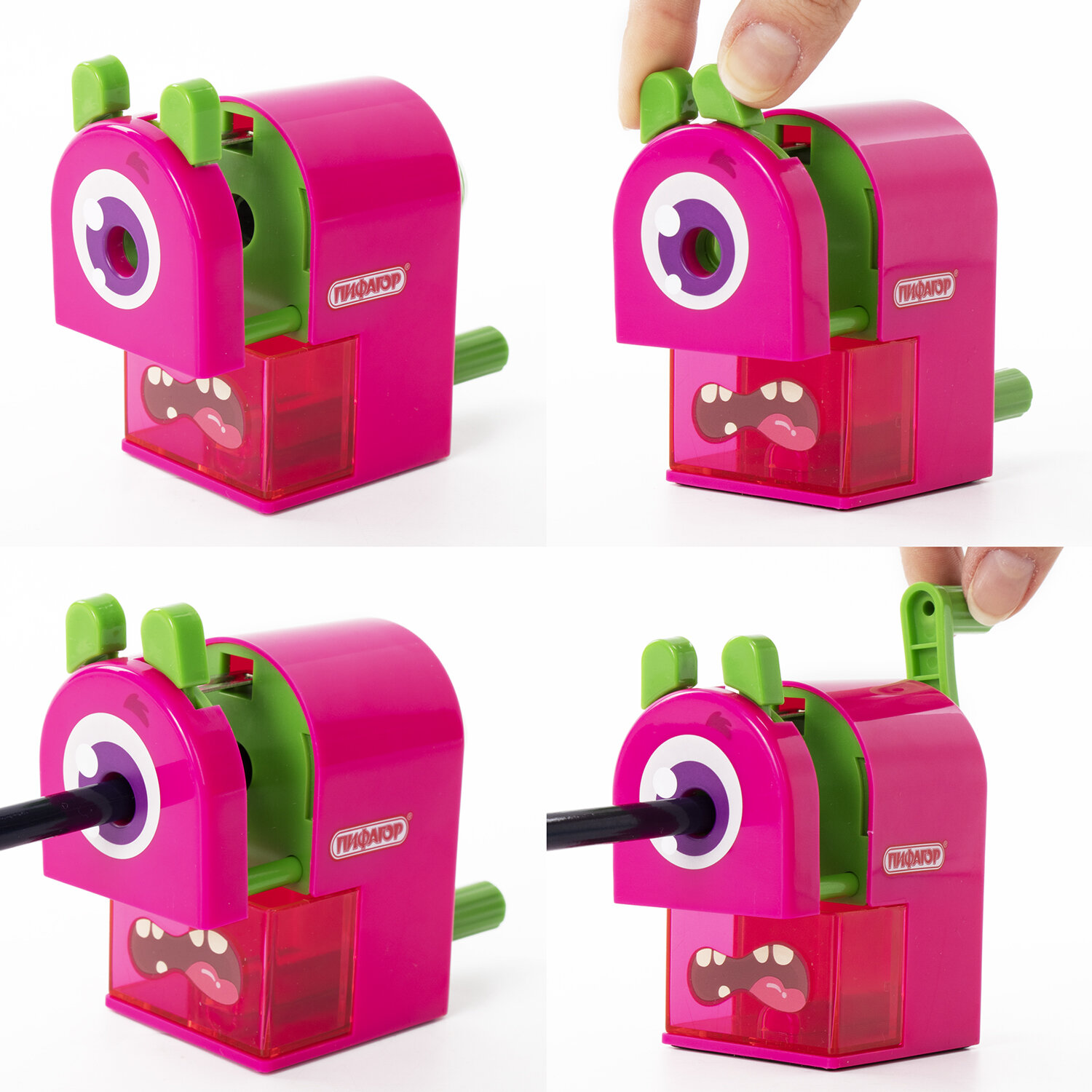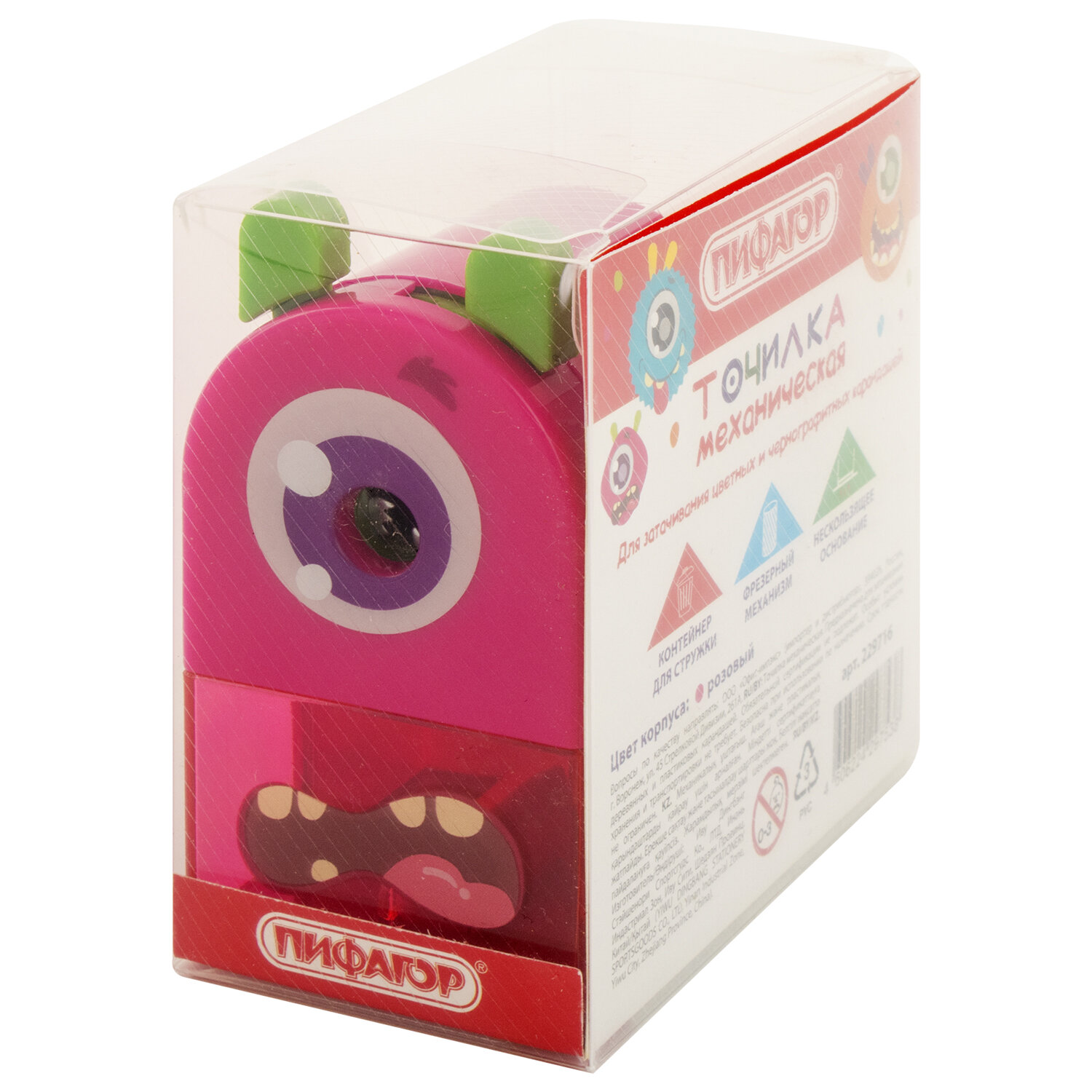 Корпус точилки выполнен из пластика. Вращающийся роликовый нож из высококачественной стали обеспечивает быструю и острую заточку. Точилка имеет одно отверстие и вместительный контейнер для сбора стружки. Диаметр затачиваемого карандаша - 8 мм. Размер - 87х90х47 мм. Упаковка - ПВХ коробка.