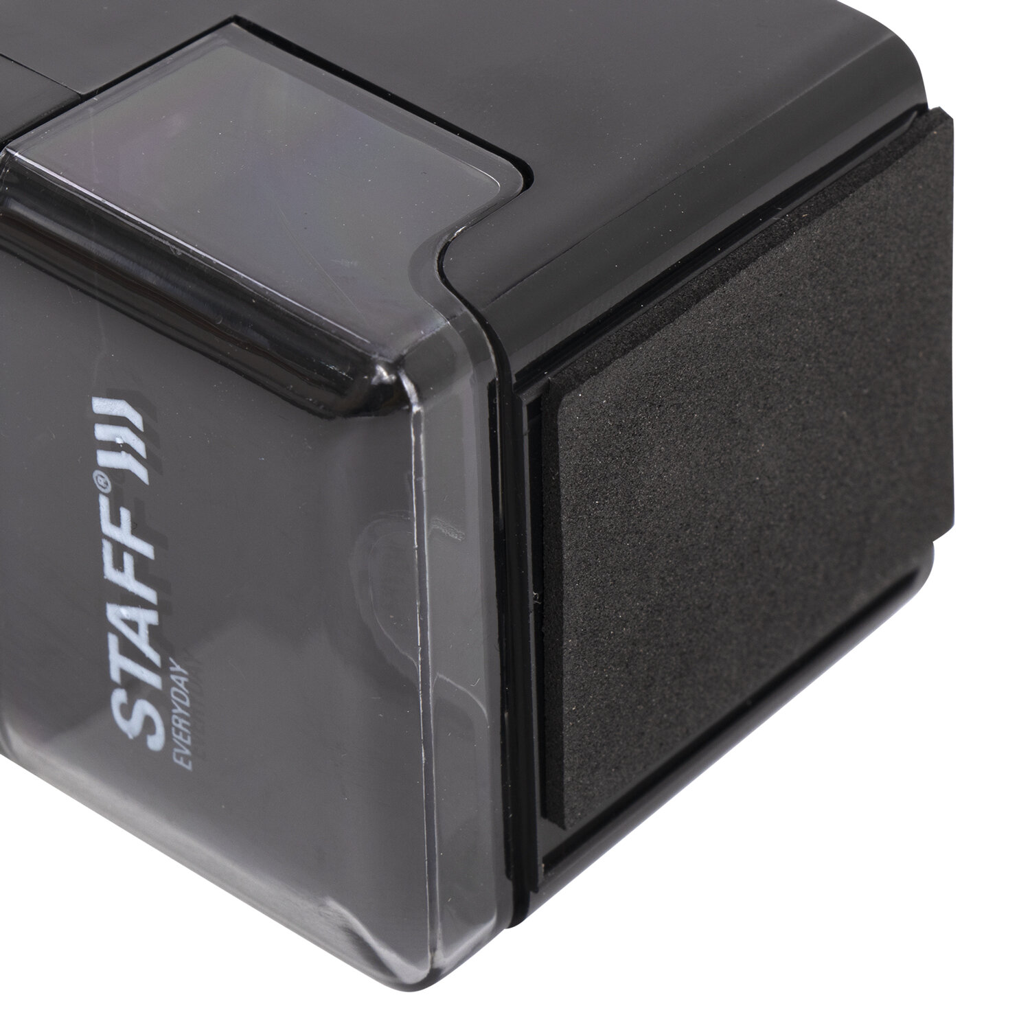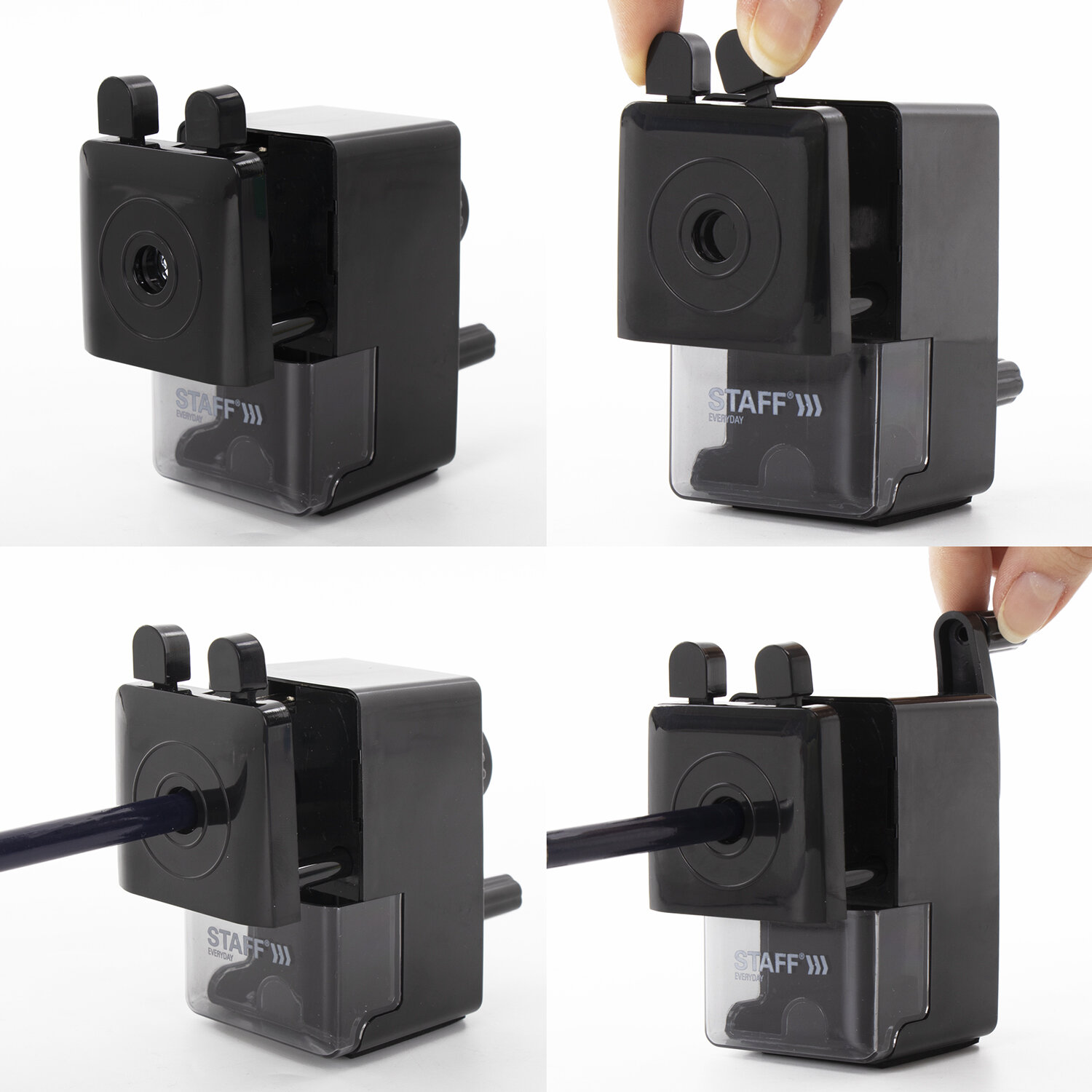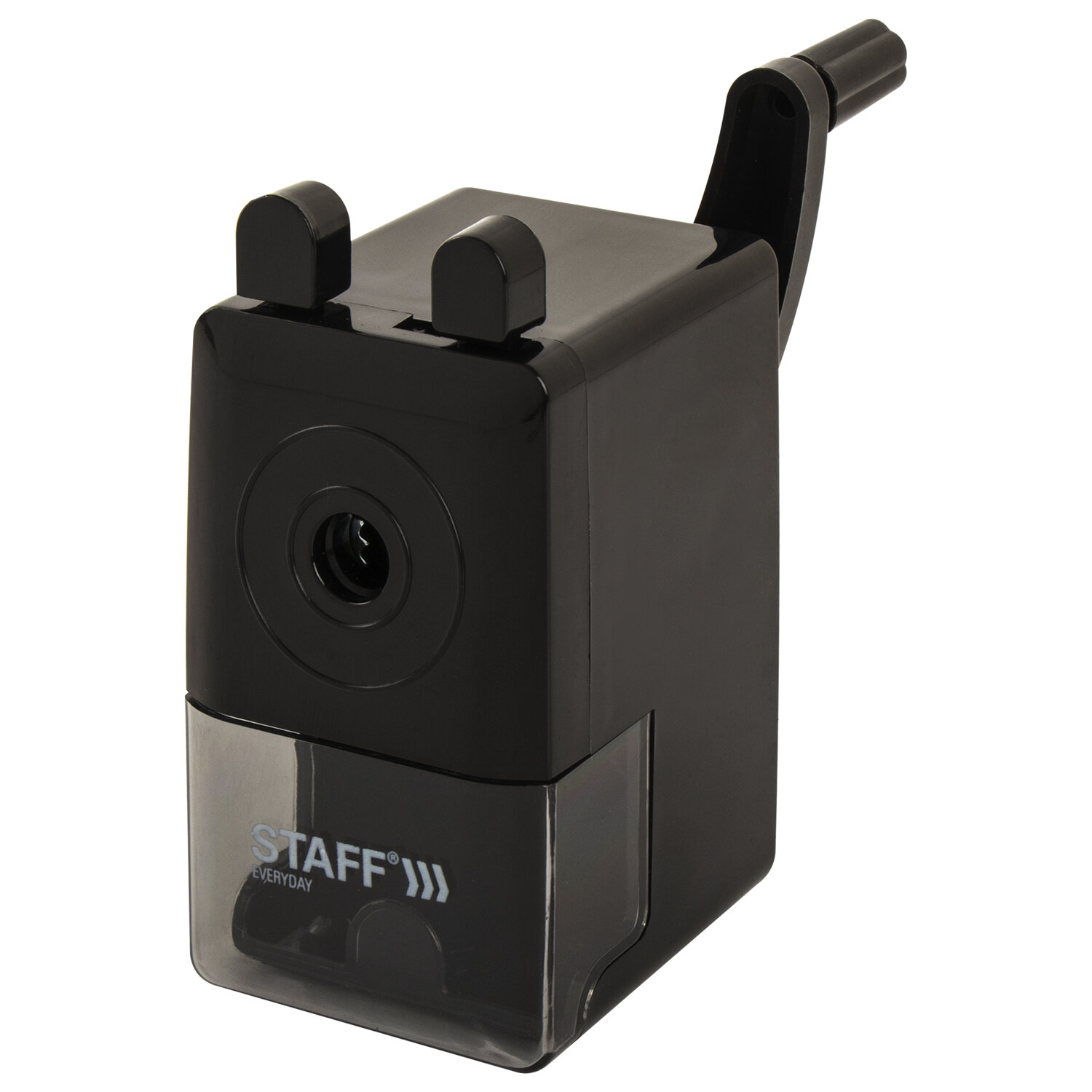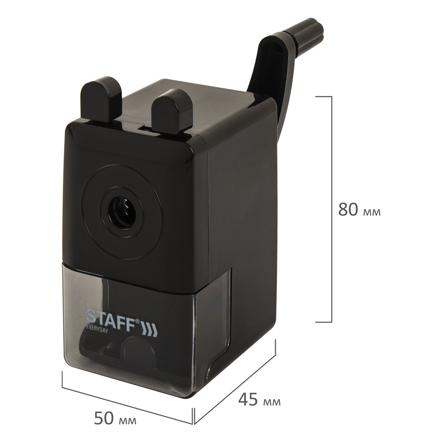 Корпус точилки выполнен из пластика. Вращающийся роликовый нож из высококачественной стали обеспечивает быструю и острую заточку. Точилка имеет одно отверстие и вместительный контейнер для сбора стружки. Диаметр затачиваемого карандаша - 8 мм. Размер: 80х50х45 мм.
