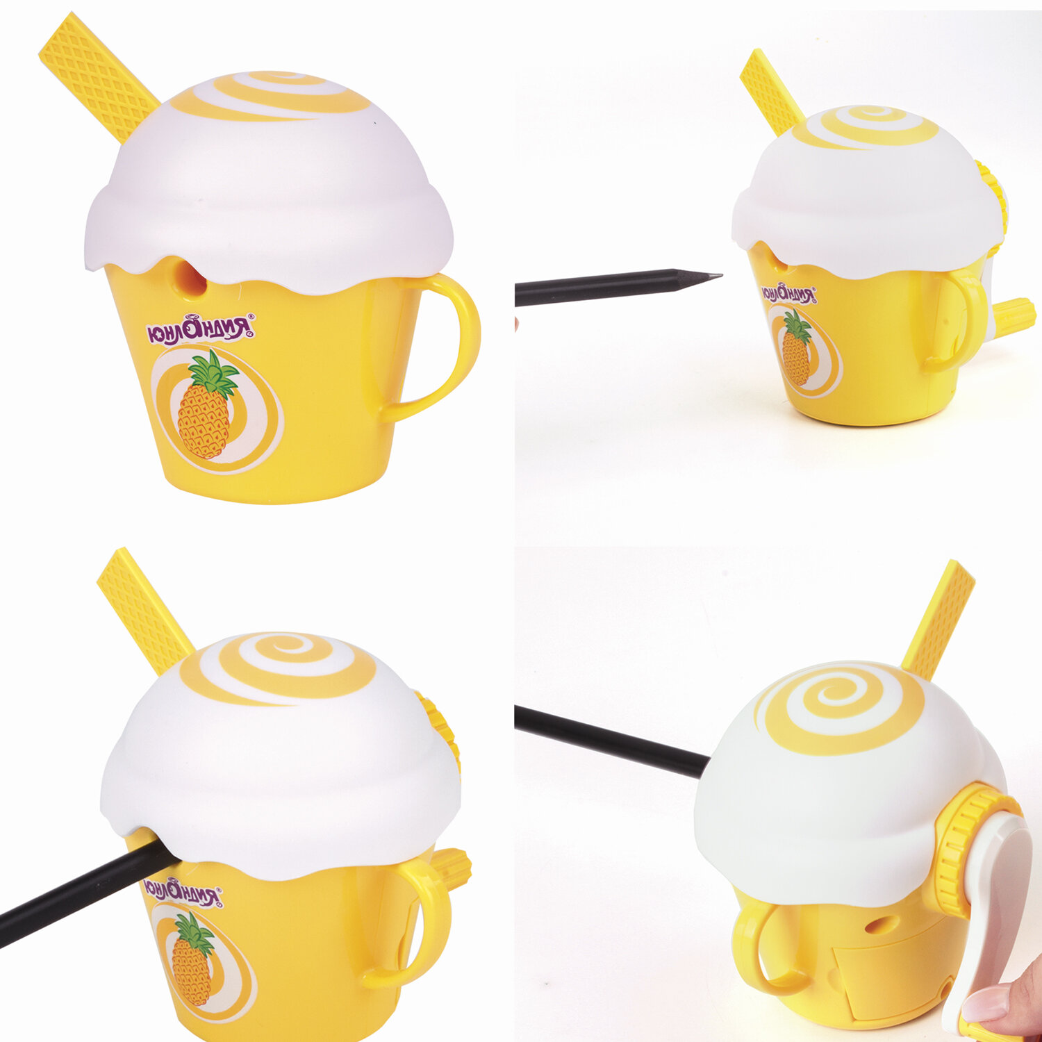 Оригинальный пластиковый корпус в виде мороженого. Вращающийся роликовый нож из высококачественной стали обеспечивает быструю и острую заточку. Точилка имеет одно отверстие и вместительный контейнер для сбора стружки. Диаметр затачиваемого карандаша - 8 мм. Размер: 100х110х80 мм.