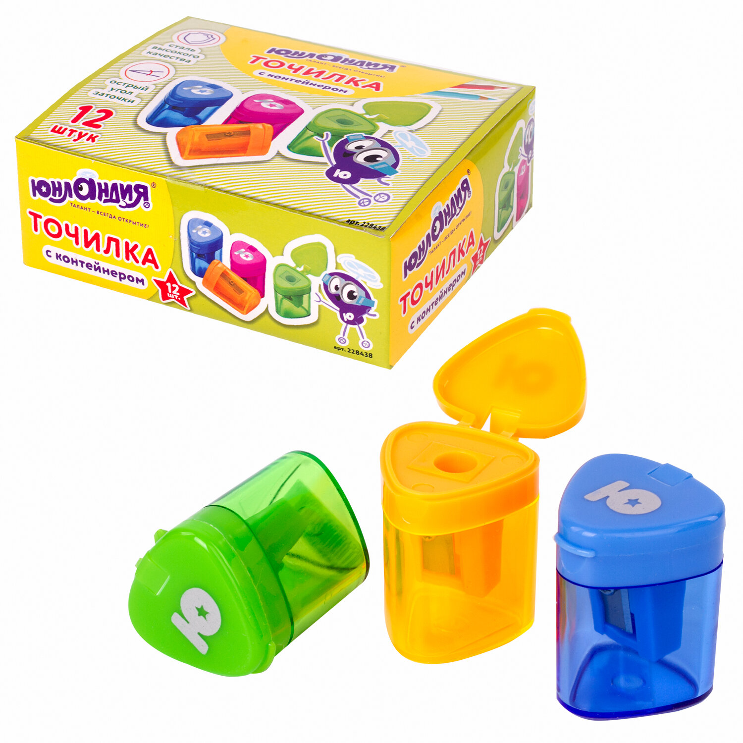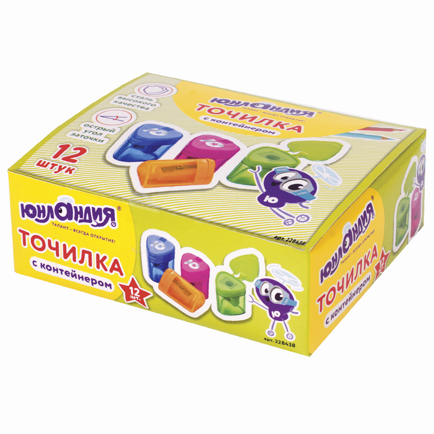 Корпус выполнен из пластика. Острое лезвие обеспечивает высококачественную и точную заточку. Карандаш до 8 мм затачивается легко и аккуратно, а опилки остаются в специальном контейнере. Имеется крышка для закрытия отверстий. Компактные размеры (34х29х29 мм) позволят поместить точилку в пенал, а благодаря интересному дизайну она не затеряется на парте или столе среди других принадлежностей.Поставляется в нескольких вариантах дизайна (без возможности выбора).