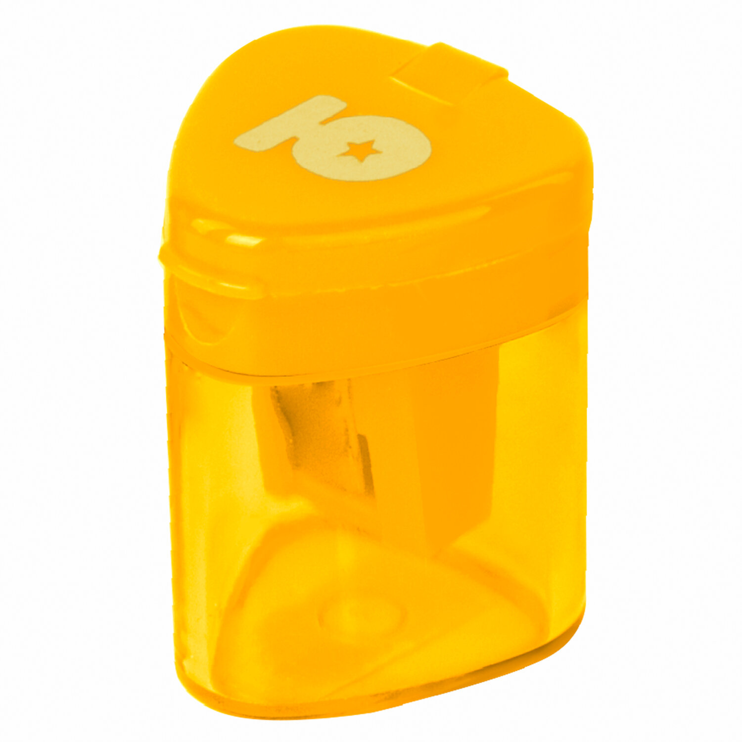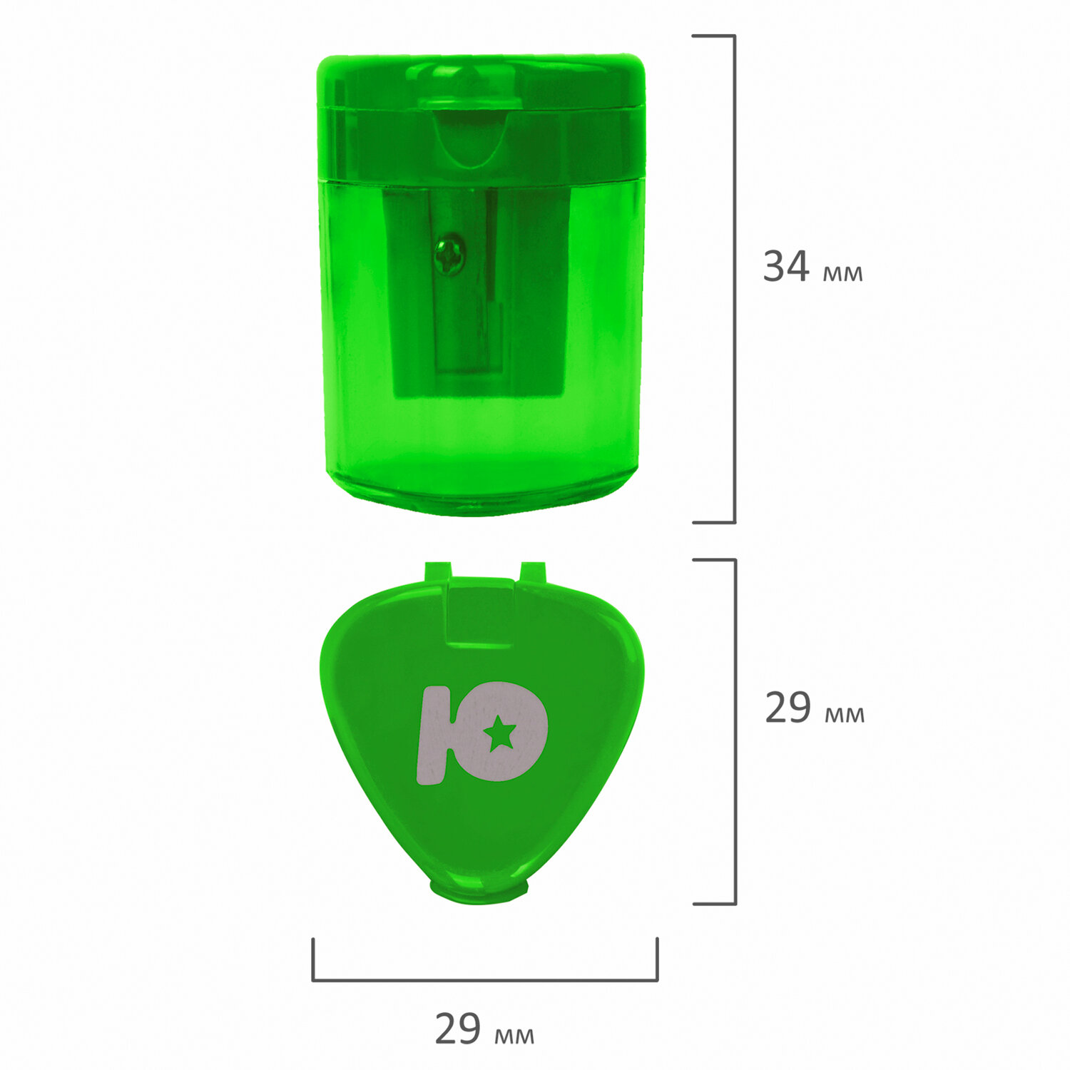 Корпус выполнен из пластика. Острое лезвие обеспечивает высококачественную и точную заточку. Карандаш до 8 мм затачивается легко и аккуратно, а опилки остаются в специальном контейнере. Имеется крышка для закрытия отверстий. Компактные размеры (34х29х29 мм) позволят поместить точилку в пенал, а благодаря интересному дизайну она не затеряется на парте или столе среди других принадлежностей.