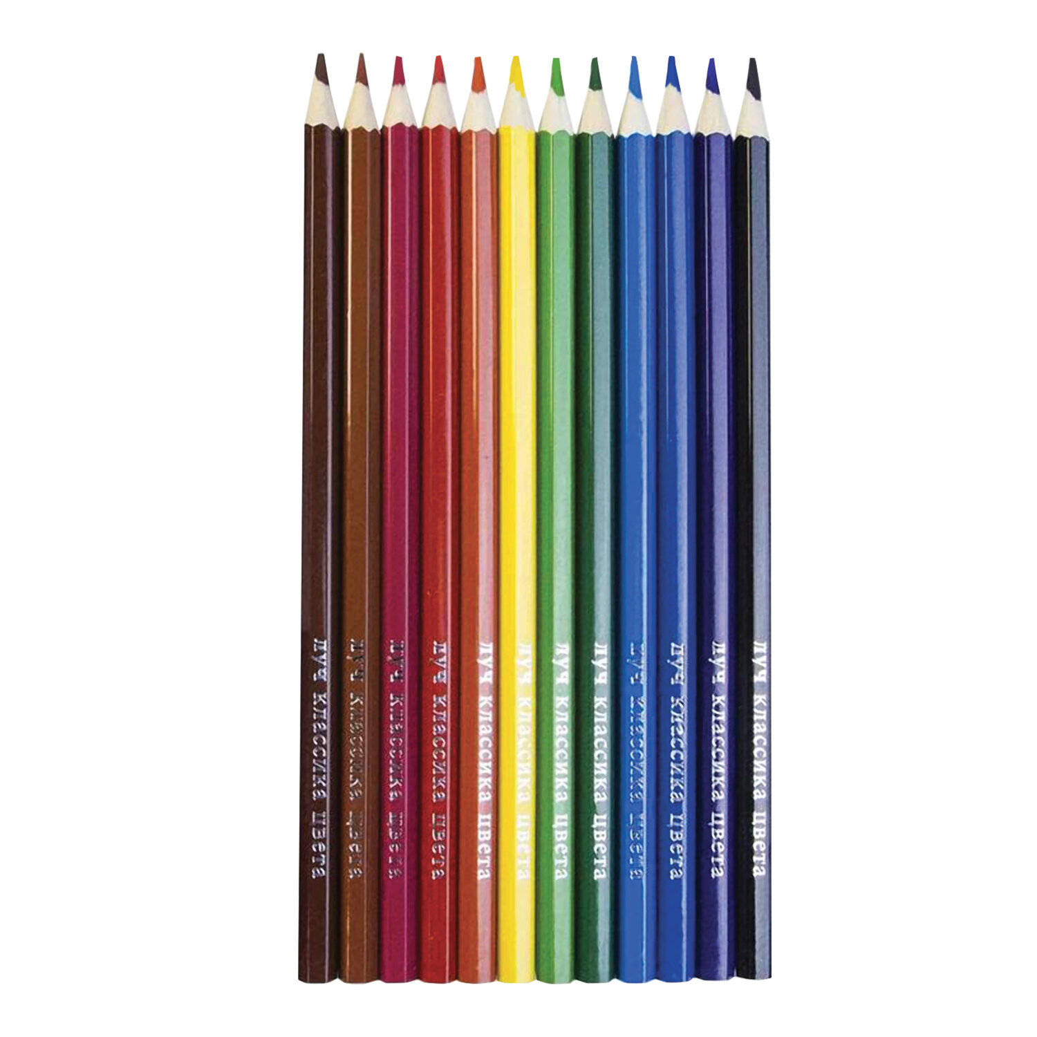 12 цветов. Шестигранные заточенные карандаши "Классика" длиной 178 мм имеют грифель повышенной прочности, диаметр которого 3 мм, прекрасно пишут и хорошо смешиваются. Рисунок ложится на бумагу густо, сплошной чёткой линией. Лакированный корпус придает изделию привлекательный вид. Легко затачиваются. Поставляются в картонной упаковке с европодвесом.