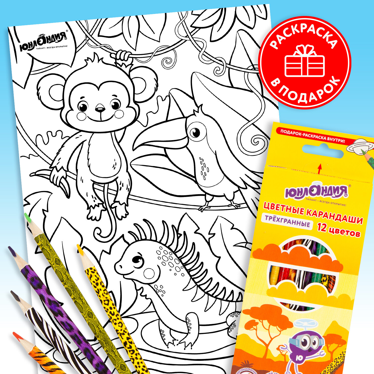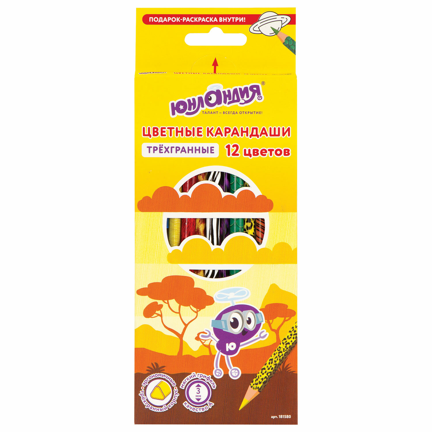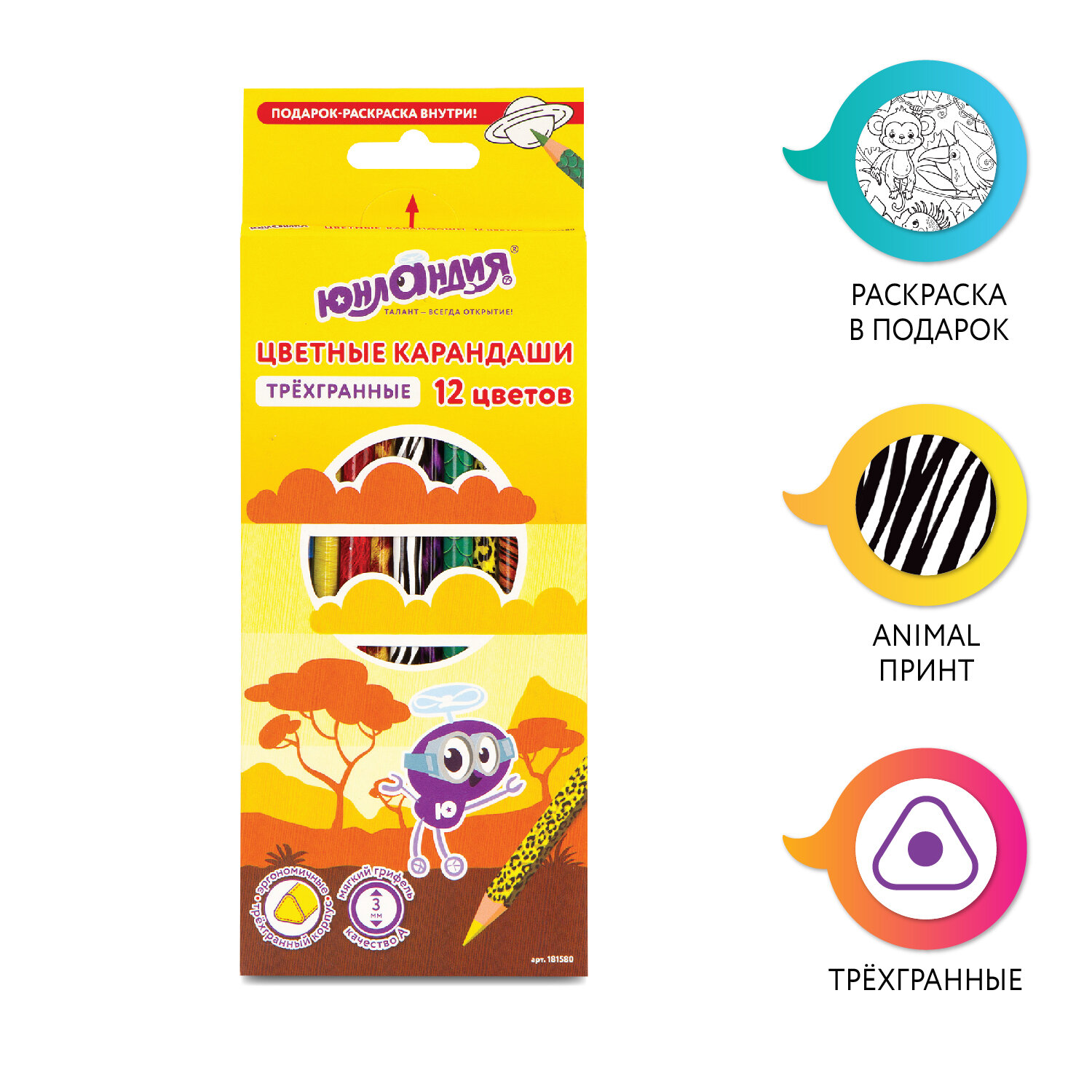 Набор состоит из 12 цветов: черный, голубой, зеленый, желтый, коричневый, красный, розовый, синий, фуксия, оранжевый, фиолетовый, темно-зеленый. Трехгранная форма сечения корпуса позволяет не скатываться карандашам с поверхности стола во время занятий рисованием. Они изготовлены из древесины ценных пород и имеют необычный корпус с яркой печатью на корпусе. Высокосортная древесина и качество исполнения гарантируют легкую заточку. Мягкий грифель качества "А" с диаметром 3 мм обладает повышенной прочностью, не ломается и не крошится при заточке. Все карандаши заточены и поставляются в картонной упаковке с европодвесом.