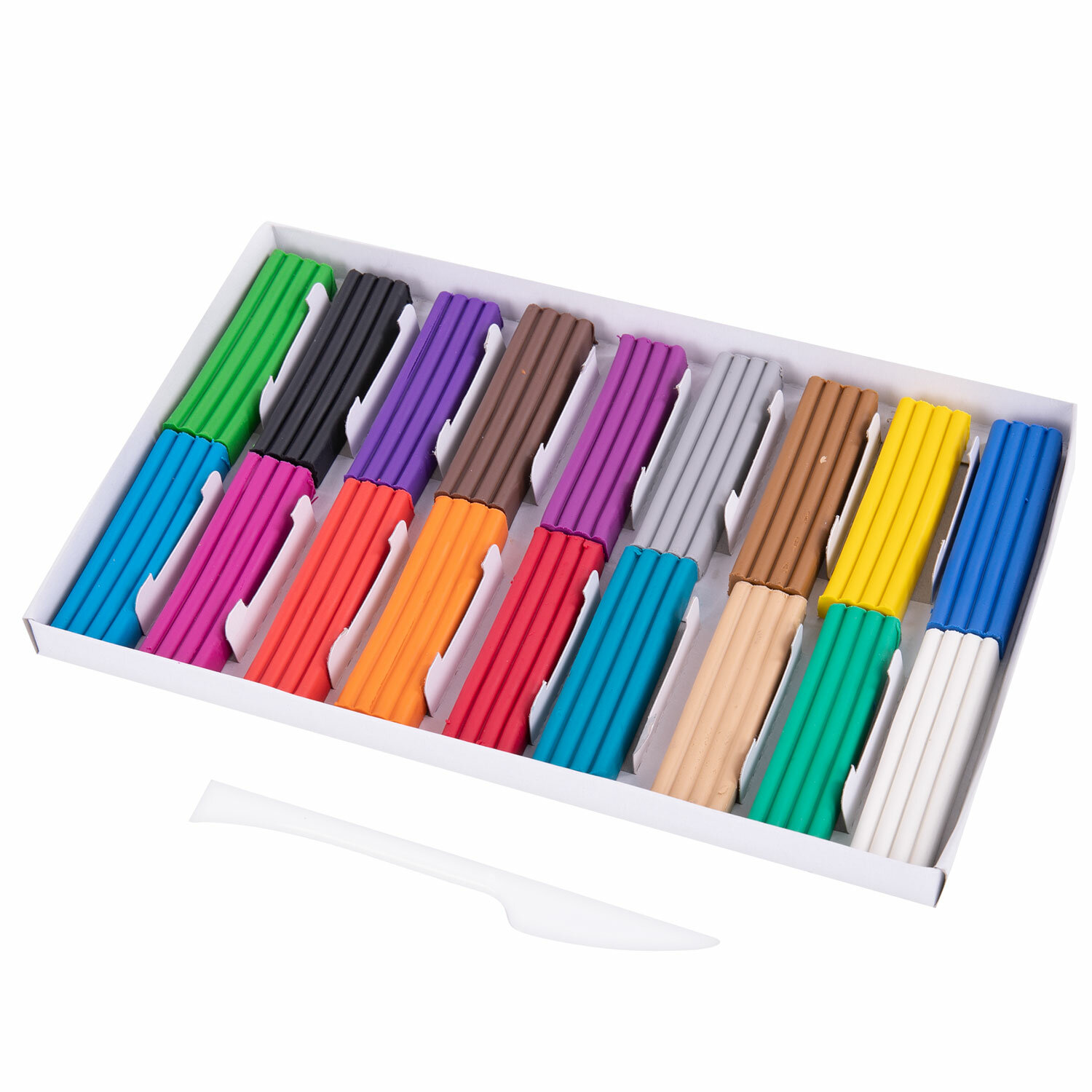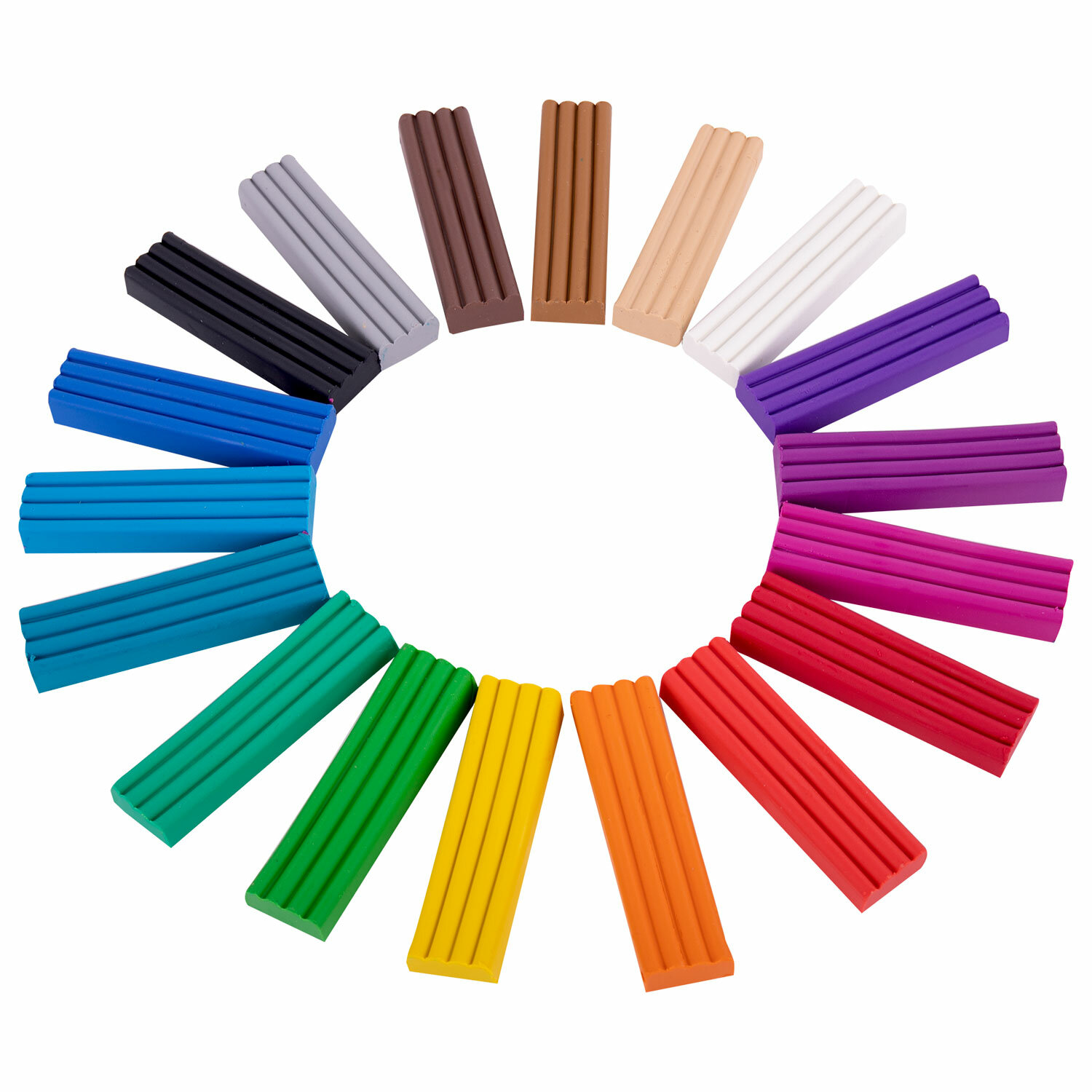 В составе набора 18 брусков по 20 г различных цветов: белый, черный, синий, красный, желтый, зеленый, коричневый, оранжевый, голубой, светло-зеленый, фиолетовый, лиловый, светло-коричневый, темно-красный, бирюзовый, сиреневый, телесный, серый. Масса набора - 360 г. Со стеком.