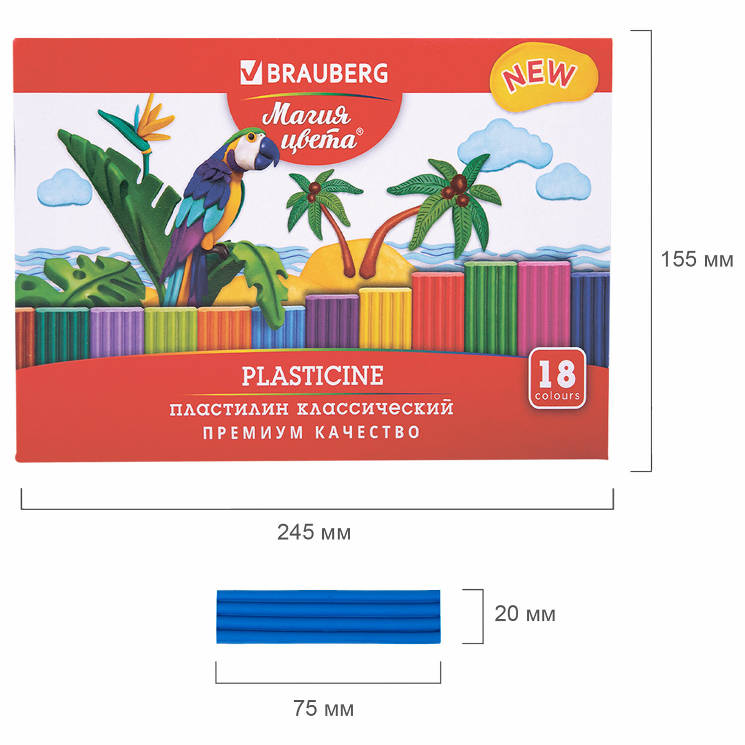Яркие и насыщенные цвета вызовут у детей исключительно положительные эмоции. Премиум качество сырья обеспечивает высокий уровень пластичности пластилина, он легко принимает нужную форму. Не токсичен, безопасен для детей. При помощи 18 ярких и насыщенных цветов ребенок легко сможет создать красочную поделку, аппликацию из пластилина или даже миниатюрную скульптуру.